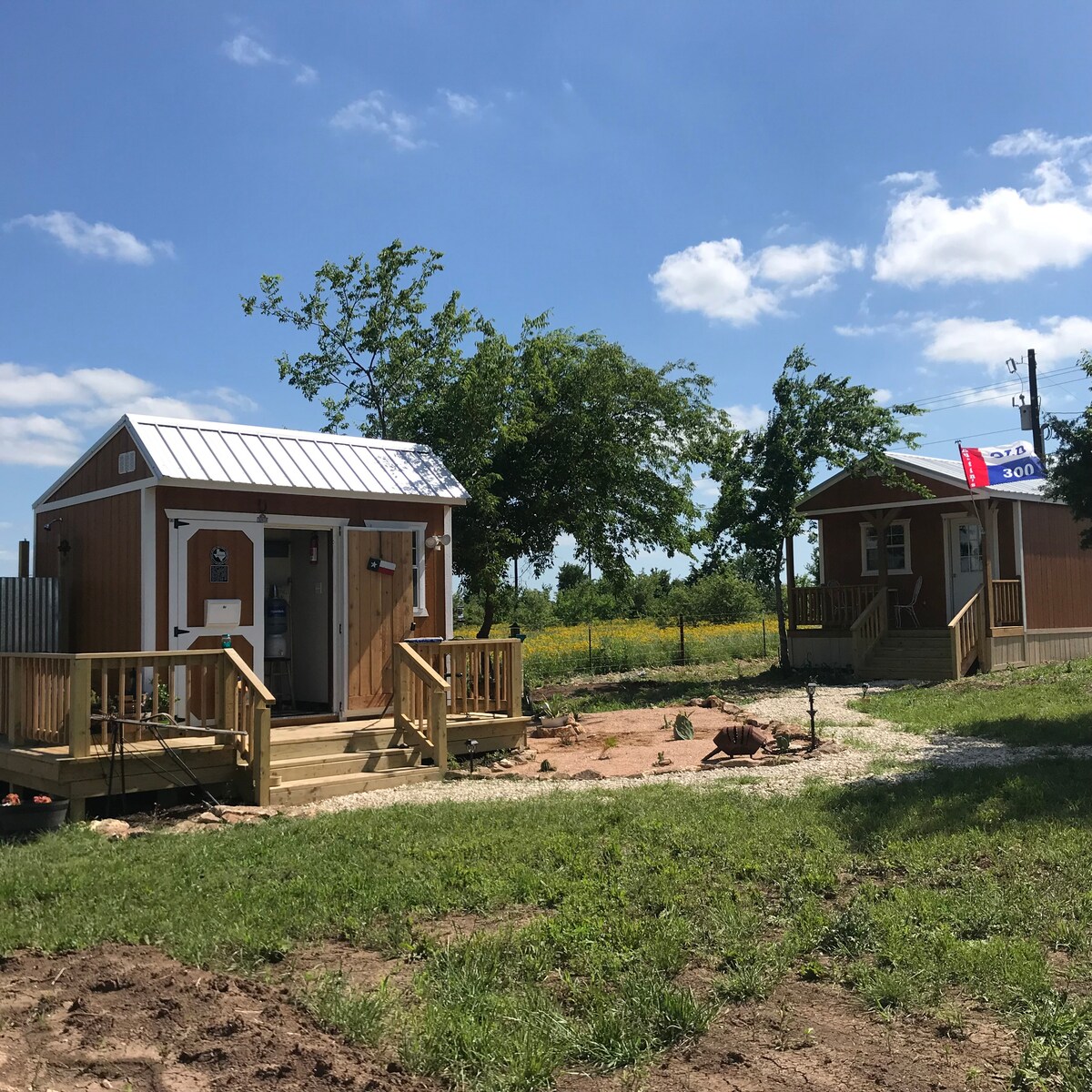 Adorable, clean 1 bed1 bath Cabin "San Jacinto " on acreage minutes to Waco/Temple. New comfortable KING bed! Sleep in peace & quiet. No same day reservations after 8 pm. Dog Must be preapproved prior to booking (fees required) No cat Escape town & sight of crowds, here it is! 3 rental cabins on-site. Enjoy ranchette, bubbling hot tub for star gazing under a dark sky, Bon fires & small retreat solitude. 20’ tipi down is down. Nice wildflowers in Spring. No smoking/vaping in cabin