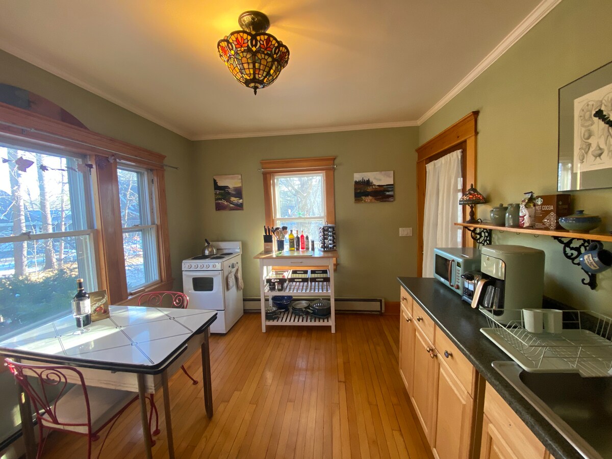 Ta čudovit, dvonadstropni bungalov Sears-Roebuck iz leta 1910 z lastnim vhodom ima poleti morski vetrič, pozimi pa udobje ob kaminu. Izposodite kolesa za raziskovanje bližnje plaže Town Landing, Audubon in gozdne poti. Sprehodite se tri ulice do lokalne pekarne na kavo. Zgornja spalnica z zakonsko posteljo gleda na bele borove. Pohištvo je bilo posodobljeno, vendar je prvotna lesena dela nedotaknjena. Le 4 milje navzgor od Portlanda je čudovito izhodišče za raziskovanje mest in plaž v Mainu.