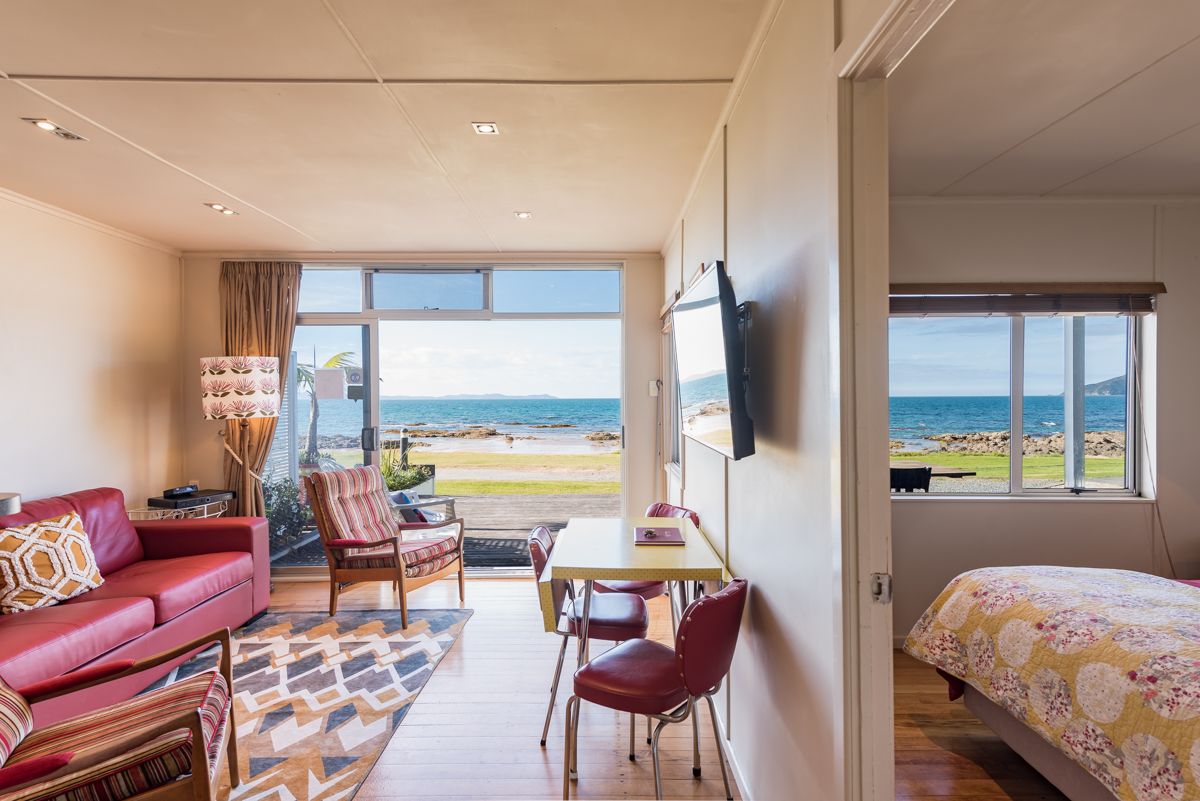 Popolno 2 spalnici ob plaži samostojno stanovanje s širokim razgledom na ocean, le nekaj korakov od vaše velike zasebne terase. Luksuzna različica kivi bacha - na plaži, vendar sodobna oprema. Kot nalašč za družine z največ 5 osebami ali dvema paroma. Družina se lahko igra na plaži, medtem ko se mama in oče sprostita na razgledni terasi. V pralnici in polni kuhinji, brezplačnem BREZŽIČNEM INTERNETU, žaru Weber, posteljnina itd. Na vse smo pomislili! Vsakdo mora doživeti to lepoto in življenje na plaži, kot je preteklost.