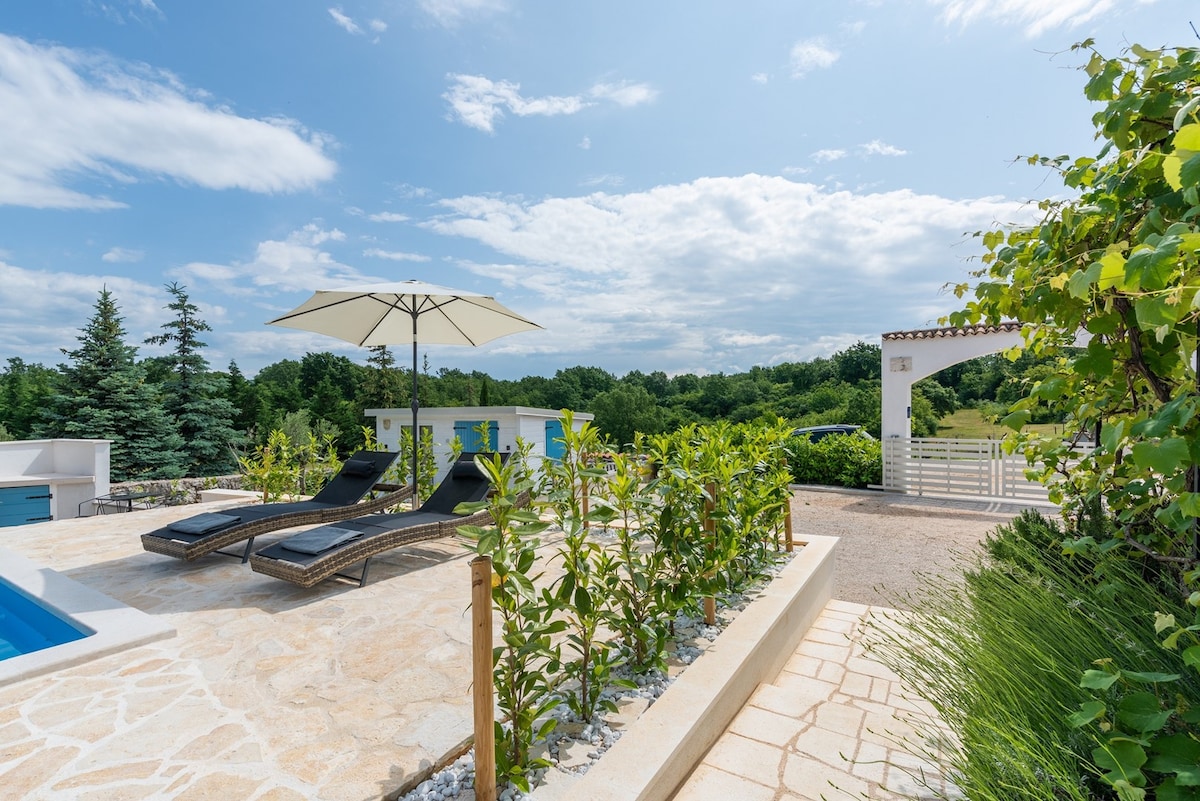 Elegantna vila v bližini Rovinja z bazenom, ki je kot nalašč za fotografiranje, potopljeno masažno kadjo in savno. Prebudite se ob bujnem panoramskem razgledu na dolino. Primerno za pare in družine, le kratek sprehod do pustolovskega parka, narodnega parka Brioni, dinozavrskega parka, srednjeveških mest in lokalne kuhinje. To je pravi zeleni oddih za vsakogar, ki se želi vrniti v naravo z vsem udobjem sodobnega življenja. V celoti opremljen za kuhanje in zabavo na 2600 m2 vrta (nogomet, hitra žoga, badminton in zabava v bazenu) za vaše otroke in najdražje.