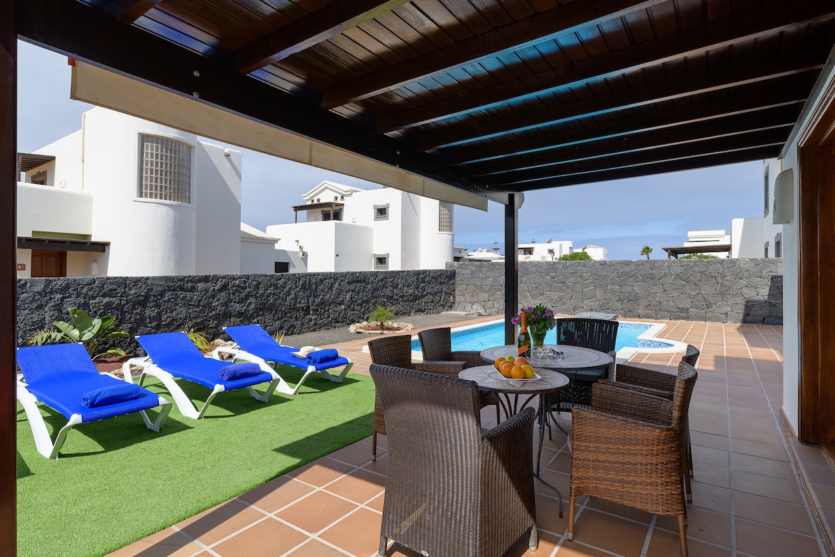 Luksuzna vila s popolno zasebnostjo v Playa Blanca. Obdano z visokimi kamnitimi zidovi, zaščiteno pred vetrom in radovednimi pogledi. Pogled na rdeči vulkan. Lep vrt. Ocean je blizu (1 km). Ogrevani slani bazen (28 ° C), obrnjen proti jugu. Velik masažni bazen (36° C). Zunanja prha. Pokrita terasa za obroke, vrtno pohištvo in ležalniki. Vhod, velika dnevna soba, jedilnica, opremljena kuhinja, 1 spalnica v spalnici, 1 spalnica z 2 posteljama in 1 kopalnico. Zasebno parkirišče. Wi-Fi s hitrostjo 50 Mb/s, pametni televizor
