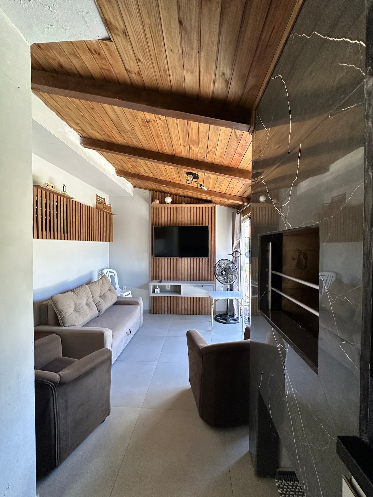 🏡 Udobna hiša med plažo in laguno Sprostite se v preprostem prenočišču, ki je udobno in opremljeno z vsem, kar potrebujete. Nahaja se v Garopabi do Sul, le 800 m od plaže in 500 m od lagune Jaguaruna. ✨ Bivališče 2 spalnici z zakonsko posteljo 1 WC Integrirana dnevna soba in kuhinja Zunanji prostor z žarom Veliko dvorišče s parkiriščem 🛋️ Oprema Kondicioniranje TV z Netflixom Izposoja kajakov za veslanje v laguni
