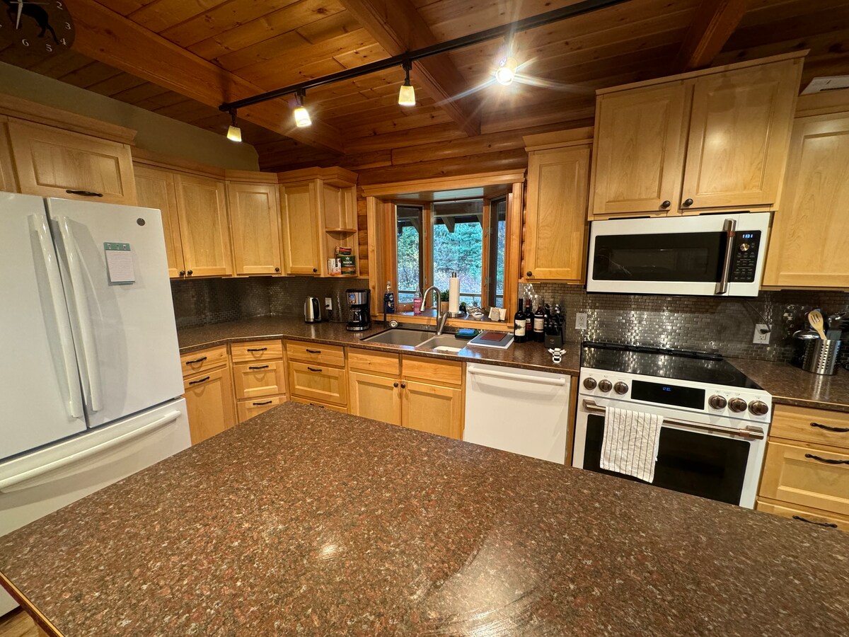 Pozabite na skrbi v tem mirnem prenočišču, ki je od 4 termalnih vrelcev oddaljeno pol ure. 5 minut hoje do spektakularne peščene plaže nasproti Saddle Mtn in 7 minut vožnje do Nakuspsa. Naša suita s površino 1100 kvadratnih metrov vključuje 2 zelo udobni zakonski postelji, razkošno kuhinjo in pralnico. Pokrita terasa z jedilnimi in počivališči ob pomirjujočem ribniku. Zasebno zatočišče za viseče mreže s pogledom na Baerg Creek. Pohod na sedlo Mnt. Sprehodite se po sprehajalni poti ob obali. Mtn bike Mt. Abriel. Nakusp, Halcyon, Halfway in St. Leon Hot Springs.