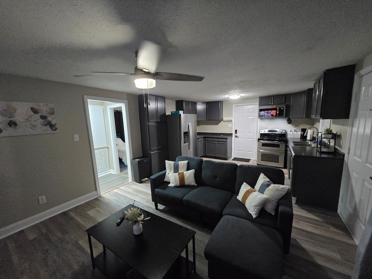 Ta zasebna suita Fayetteville, ki je kot nalašč za družinske obiske ali manjše skupine, udobno sprejme do tri goste. Uživajte v 65-palčnem televizorju v dnevni sobi in 55-palčnem televizorju v spalnici z Netflixom, Disney+, Premierjem in Jellyfinom. V spalnici je zakonska postelja za dve odrasli osebi in malčka, v dnevni sobi pa je raztegljiv kavč z zakonsko posteljo za eno odraslo osebo ali dva otroka. S popolnoma opremljeno kuhinjo, delovnim prostorom, kopalnico, pralnico in zaprtim dvoriščem je kot nalašč za vsako bivanje.