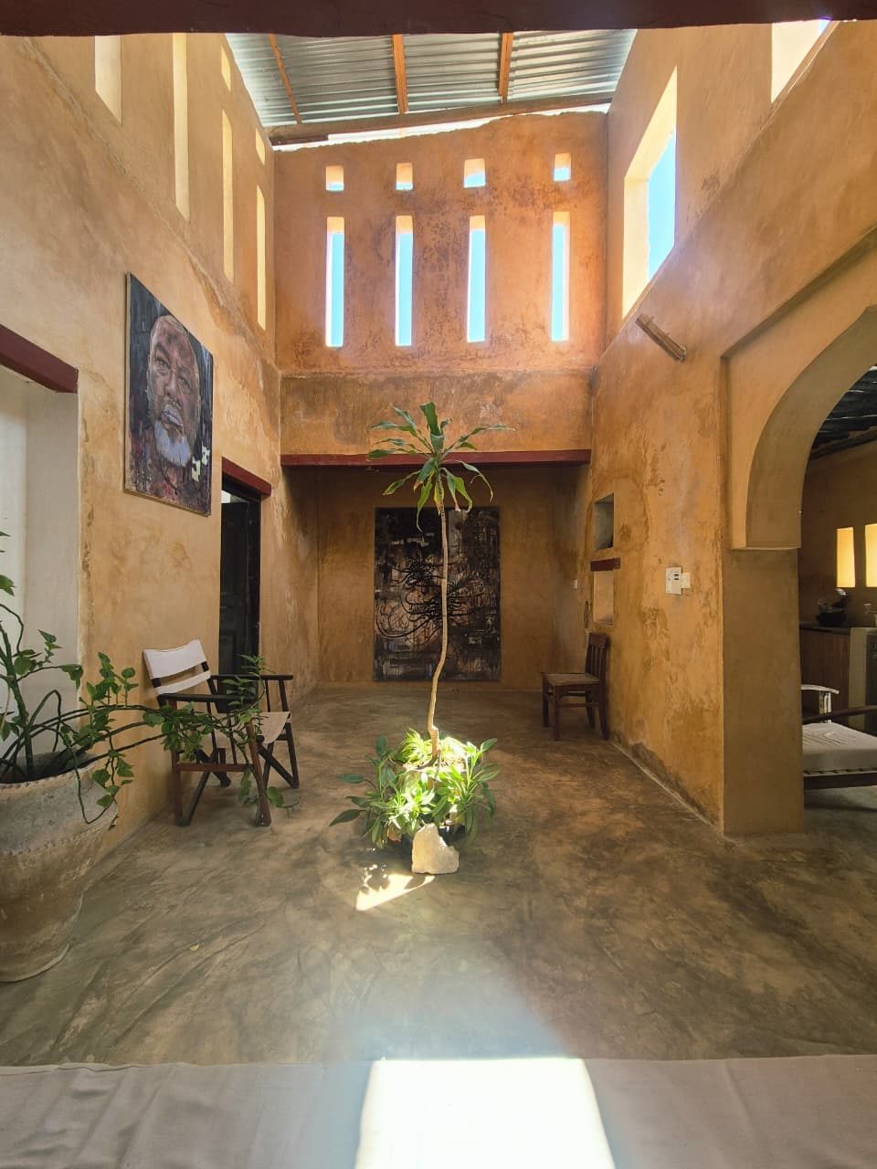 Set along Usita wa Mui, the main street of Lamu Old Town, this flat is the first project of a graduate architect and artist (the host himself). Housed in a 700-year-old Swahili home, it combines history, craftsmanship, and art. The space doubles as a working studio and small gallery with mixed-media works. Facing the lively street, it carries the hum of daily life and stories below — a true immersion into the spirit and creativity of Lamu.