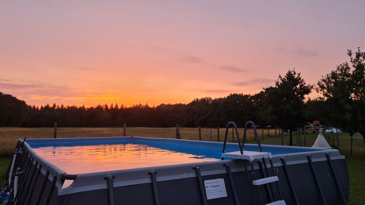 Velikodušen raj obdan z osli, ovcami, lamo, mačko, gozdom, travniki in polji ter še vedno relativno blizu Berlina. Apartma ima 5 sob (3 DB, 8 EB) in mongolsko jurto (1DB, 2EB), dve kopalnici s petimi tuši, tri stranišča, kad, zunanji bazen, savno, ogromno dnevno sobo (70 m2) in stekleno kuhinjo (65 m2). Vse je na novo zgrajeno in zasnovano. Če želite uživati v miru in sprostitvi z družino, družinami ali skupino, so dnevi tukaj.