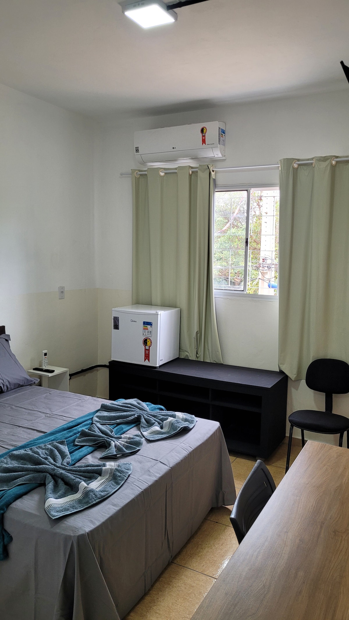 Bivajte v dvosobnem apartmaju, ki je zasnovan tako, da ponuja udobno in funkcionalno izkušnjo. Prostor ima prijetno vzdušje, odlično lokacijo in vse potrebščine za mirno bivanje z zaščitnimi ograjami na medetaži v skladu s predpisi NBR 9050. Za goste, ki bivajo v prenočišču, imamo ekskluzivno storitev osebnega hišnega upravitelja, ki je na voljo vsak dan do 22. ure in zagotavlja podporo, smernice in večje udobje med bivanjem.