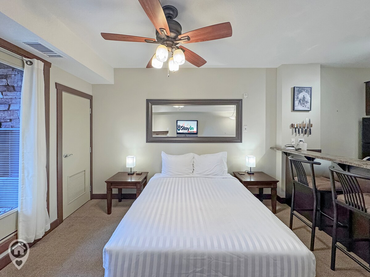 Ta sveže prenovljena suita ima kuhinjsko nišo in zakonsko posteljo King-Koil. Številne ugodnosti vključujejo pametno televizijo visoke ločljivosti, hiter internet, žar in omarico za smuči. Nahaja se ob reki Elk, le tri minute vožnje do letovišča Fernie Alpine Resort ali Mt. Pokrajinski park Fernie in kratek izlet do zgodovinskega središča Fernieja. Ne glede na to, ali boste bivali eno noč, en teden ali en mesec, je to popoln prostor za vaše poslovno potovanje ali gorski oddih.