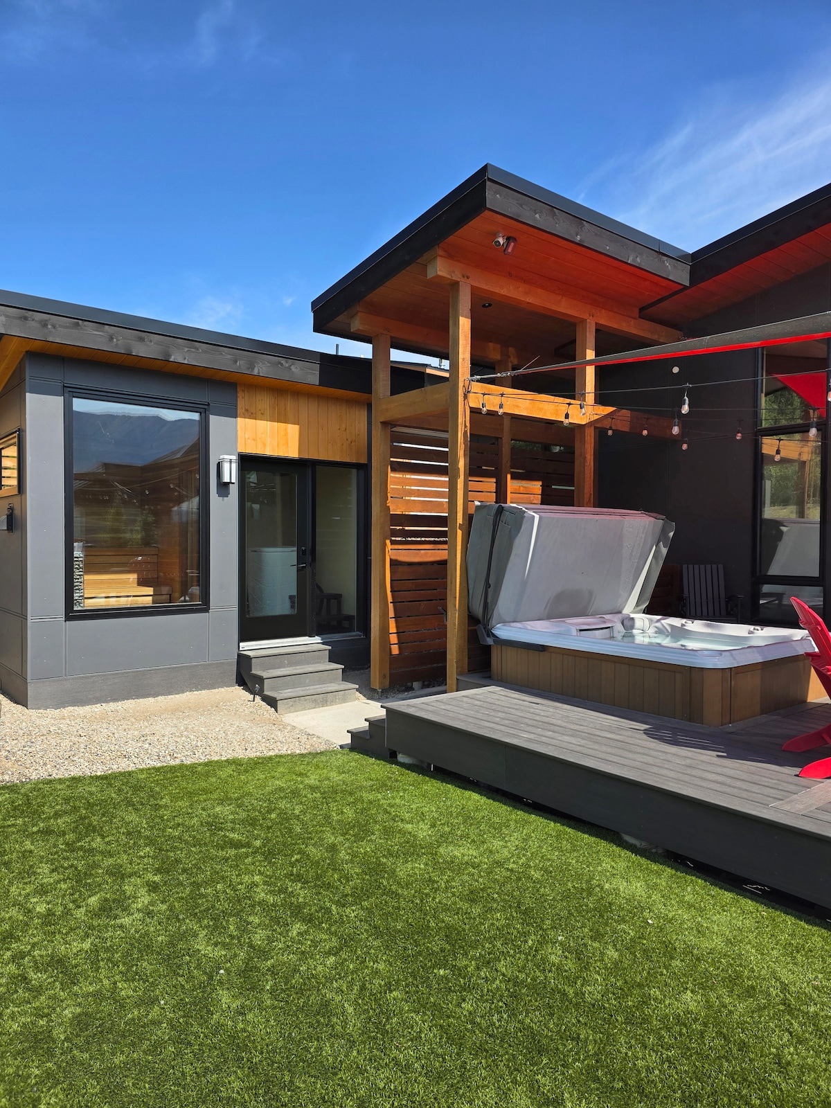 Sprostite se v tem edinstvenem in mirnem oddihu. Nahaja se v soseski Castle Mountain Estates, ki leži med drevesi s čudovitim razgledom na gore, kolesarjenje/pohodništvo (gorska povezava poti) tik ob hiši. Ni se vam treba voziti nikamor. 1 spalnica (zakonska postelja), 1 kopalnica in raztegljiv kavč v dnevni sobi je ta hiša idealna za pare in majhne družine. Po dnevu zabave boste imeli svojo zasebno masažno kad. Nahaja se le nekaj minut od središča Fernieja in boste imeli enostaven dostop do vsega, kar ponuja mesto.