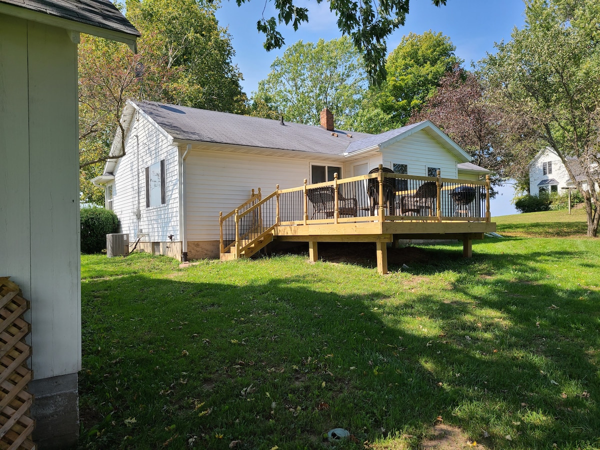 Novo zgrajena (2018) družinska podstrešna hiša v mirnem, sproščujočem podeželskem okolju na 2 hektarjih z razgledom na reko Mississippi! 232 kvadratnih metrov. Le 6,5 km od Gatherings on the Ridge, 20 minut od zgodovinskega središča mesta Prairie Du Chien in kratek izlet do reke. Primerno za 8-10 oseb, glavna spalnica z zakonsko posteljo, 2 zakonski postelji in raztegljiv kavč za dve osebi v mansardi, zakonska postelja v kleti, 2 kopalnici, glavna kopalnica ima masažno kad, popolnoma opremljena kuhinja (lonci, ponve, posoda, opekač kruha, keurig, kavni avtomat, aparat za kavo, pekač za vaflje itd.)