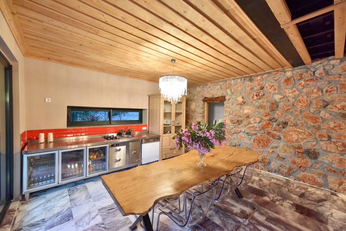 Kamnita hiša z masažno kadjo z bazenom s pogledom na zaliv Kabak