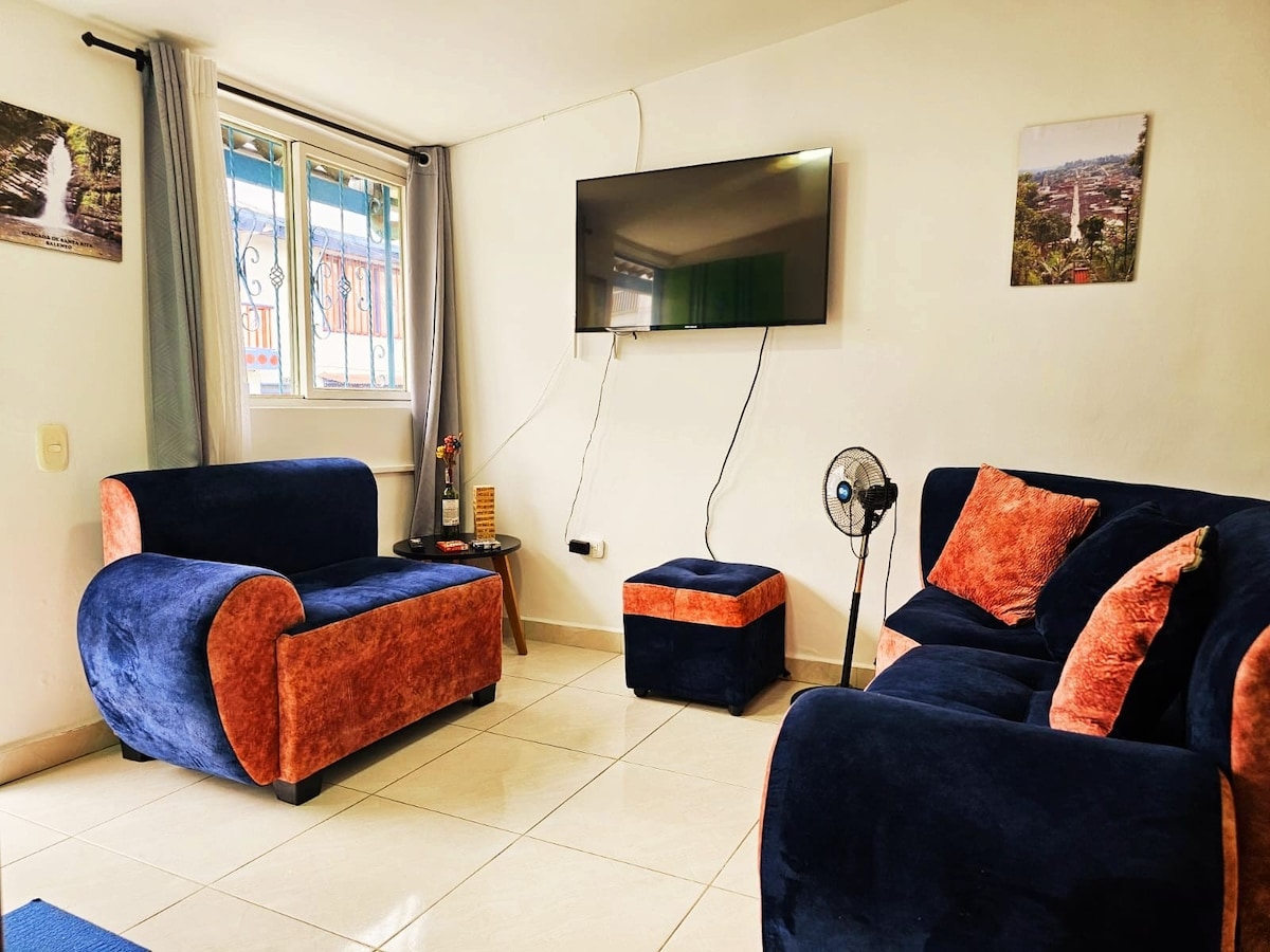 Udobno zasebno družinsko stanovanje s popolno neodvisnostjo, ki se nahaja 3 ulice od glavnega vhoda in 5 ulic od parka. Ima supermarkete, trgovine in restavracije, vse pa so v bližini bivališča. Ima 3 spalnice, 1 dnevno sobo, 1 jedilnico, 1 kuhinjo, opremljeno z vsem, kar potrebujete, 2 kopalnici z vročo vodo, 50-palčno televizijo in Wi-Fi. V popolnem stanju je, da delite in počivate kot družina. Naslov je Cra. 3 No. 8-01 Salento