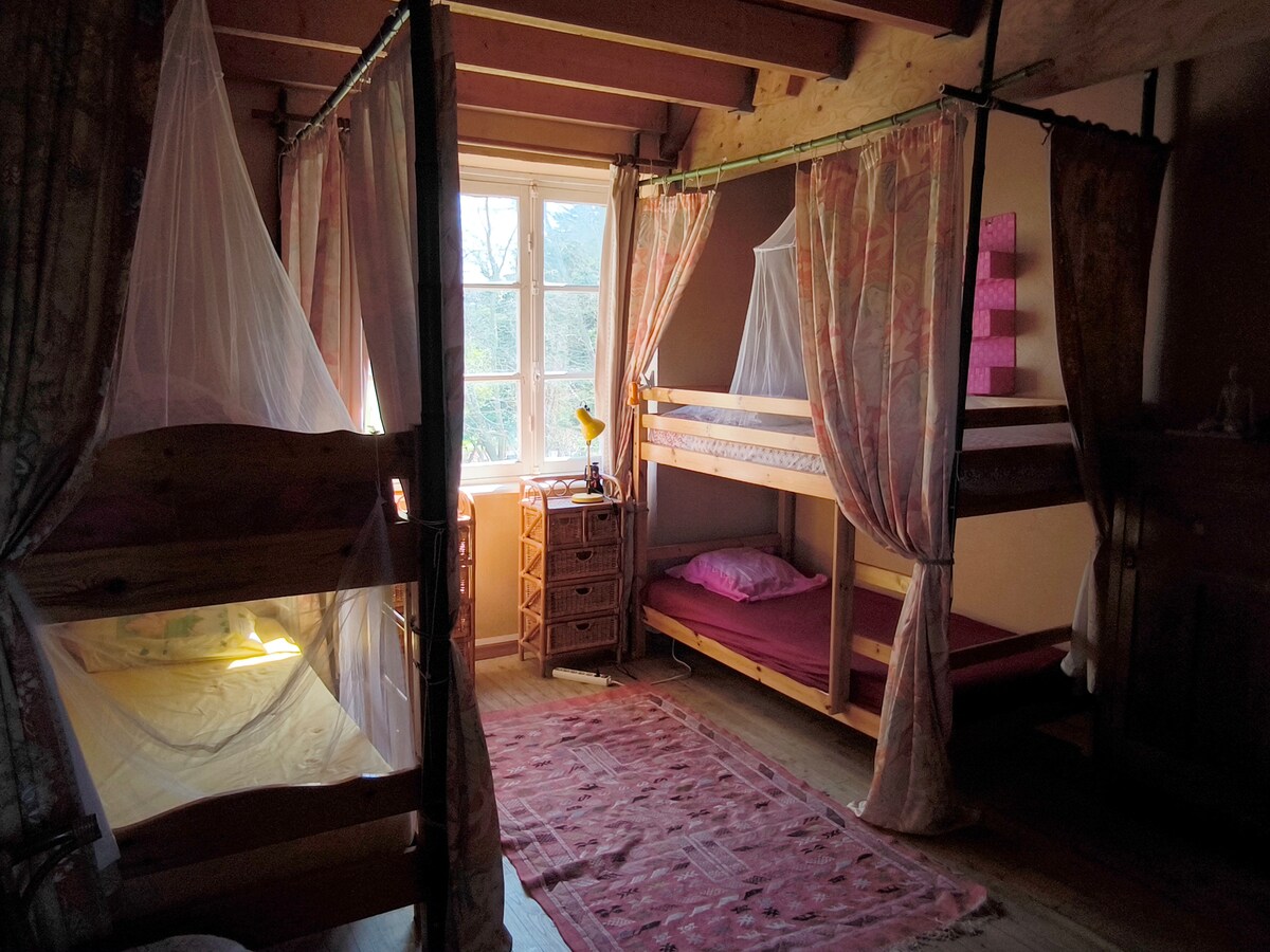 Chambre de 5 lits dans le gîte d'étape Les Passagers d'Ys à 50 mètres du GR34 et de la plage. Chambre avec vue imprenable pouvant être partagée avec d'autres voyageurs ou privatisée. Située au 1er étage, la chambre dispose d'une salle de bain privative et d'un wc privatif sur le même palier. Au RDC de 77m2, les voyageurs partagent les espaces communs spacieux : cuisine équipée, salle à manger, salon, entrée ; à l'extérieur une terrasse de 70m2 et un jardin permettent de profiter des beaux jours