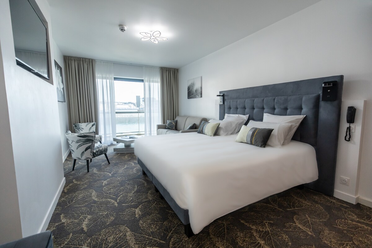 Tišina na višini pristanišča: suita s pogledom na morje brez kuhinje s površino25m2 v bivališču z zasebnim parkiriščem in dvigalom. Idealno za 2 osebi. Kopalniško perilo in postelje so na voljo. Zasebna kopalnica in izdelki za dobrodošlico. Majhen balkon ali terasa v pritličju z osupljivim razgledom na Vaubanski stolp in kapelo Rocamadour. Vzemite ključe stanovanja v hotelu Thalassa na 100 metrih 6 Quai Styvel.