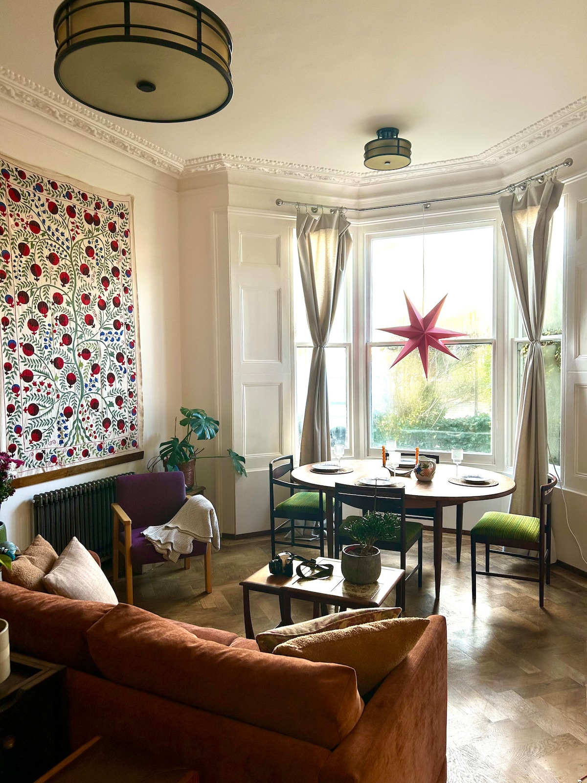 Dobrodošli v mojem domu, kjer lahko uživate v obilici naravne svetlobe z dvojnimi okni, obrnjenimi proti jugu, in velikim balkonom. Uživajte v sončnih zahodih na balkonu. Če je prehladno, ga še vedno ne boste zamudili z okni od tal do stropa in drsnimi vrati. Tukaj živim vse leto sam, vendar ga izpustite, ko sem odsoten, tako da imate na voljo vse, kar potrebujete za bivanje v Londonu. Všeč mi je bilo prinesti svojo osebnost v stanovanje z mešanico starinske dekoracije, barve, umetnin in zanimivih del, zato upam, da boste uživali!