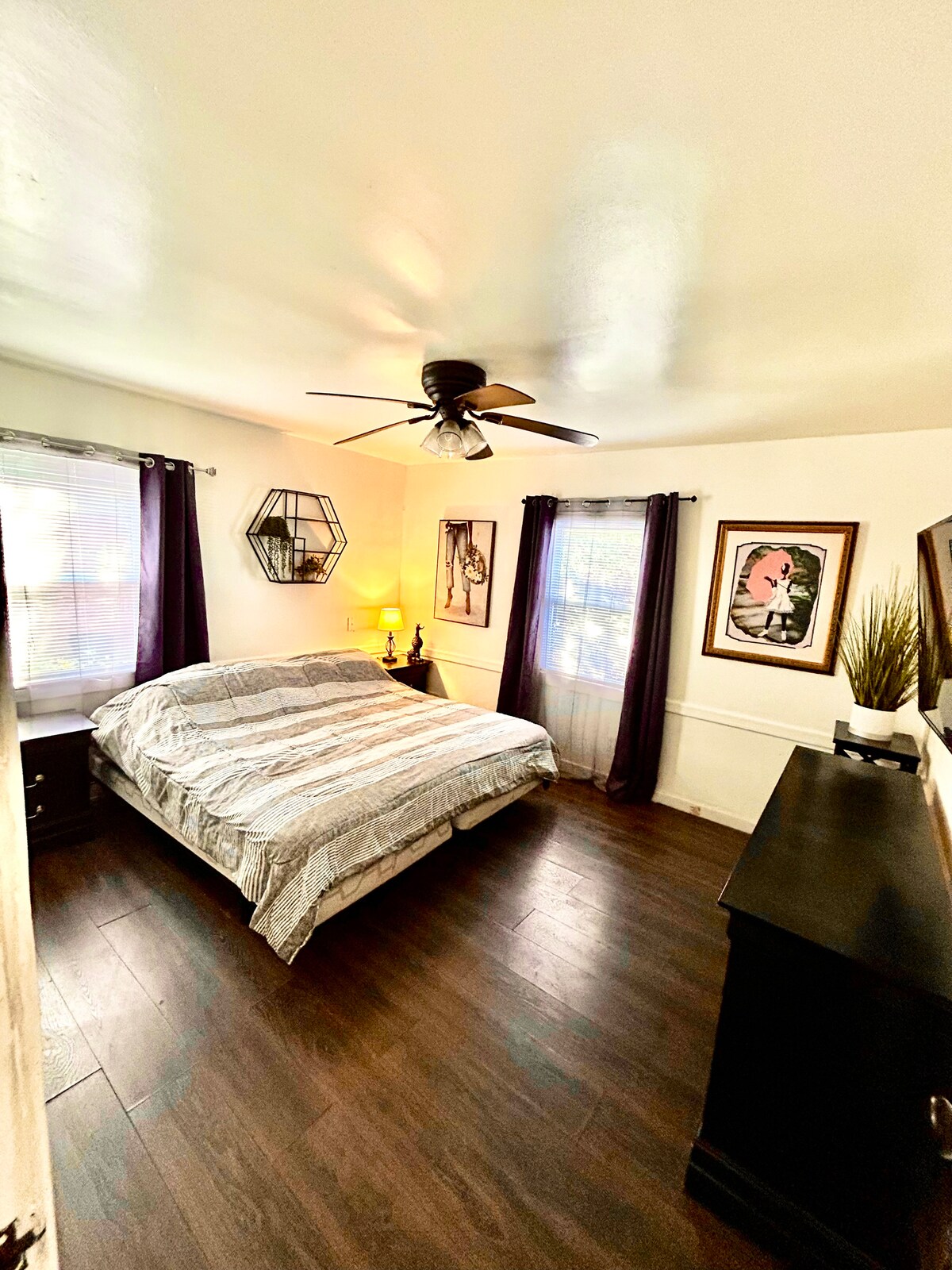 Naše prenočišče se nahaja v Shirleyju na Long Islandu. Od plaže Smith Point Beach ob oceanu je oddaljen dve milji. Ta vnos je namenjen rezervaciji celotnega prenočišča, ko smo odsotni. Preverite naša mnenja o drugem vnosu iste sobe in prenočišča. Spalnica za goste je v glavnem nadstropju najinega prenočišča, poleg sobe pa je kopalnica. Soba je opremljena z udobno zakonsko posteljo, mizo z dvema stoloma, omaro, dvema nočnima omaricama, foteljem in Apple TV-jem z različnimi aplikacijami za pretočno predvajanje
