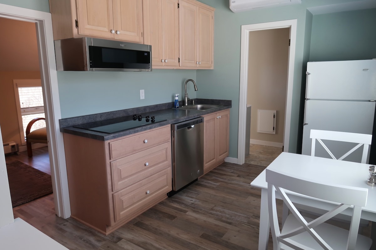 Grandview Farm Cottage is a circa 1920s newly renovated, 420 sq. ft. private guesthouse on the grounds of a 2.5 acre Door County property built in the late 1800s. Modern, industrial and repurposed style meets vintage farmhouse charm. Central location allows for quick drive or even a bike ride to either coast of the peninsula. Enjoy nature, wildlife, your own organically grown gardens, and dark starry night skies, while being only 3 miles to nightlife and shopping and beaches and parks.