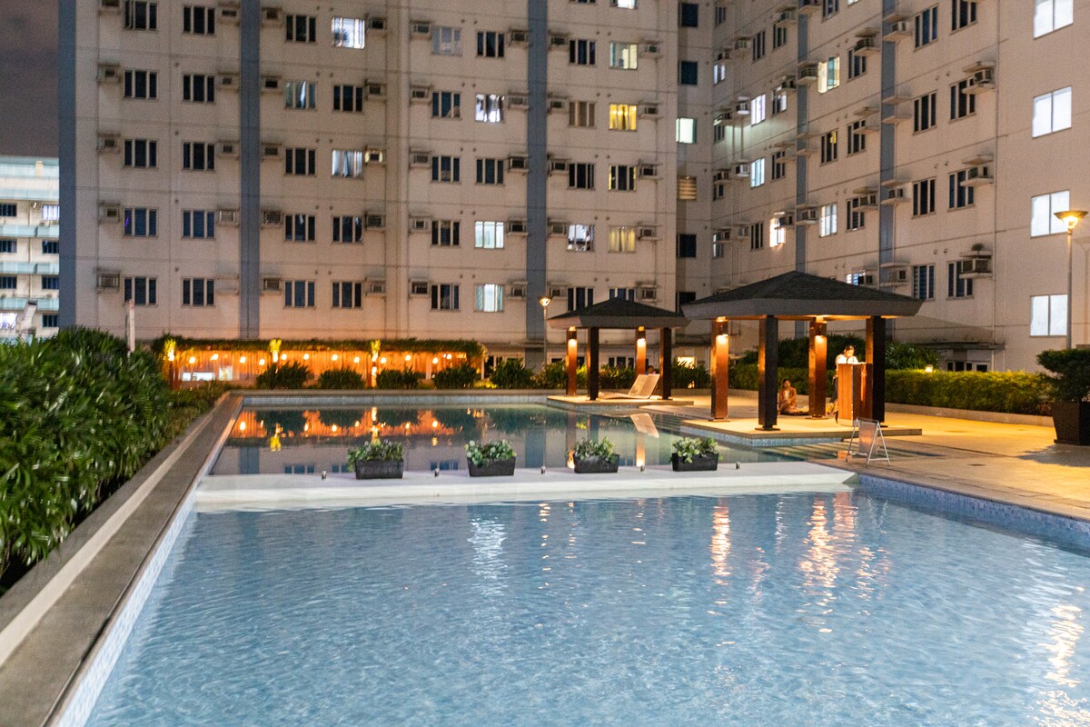 A corner unit in a high-rise condo with North and East city views. The building has a 24/7 7-11 for your needs. Enjoy free amenities: Pool (7 AM– 8PM) and Gym (7 AM–10 PM). Please inform the staff of your preferred schedule. The area offers many restaurants, fast food, supermarkets, and night bars. For laundry, Money Laundry Shop is located at the Ground Floor Lobby.