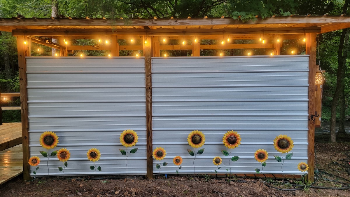 Umaknite se od vsega, ko boste bivali pod zvezdami v The Shantyju. Redak dragulj, ki se nahaja v gozdu Tennessee ob sproščujočem potoku. Sedite ob ognju, na eni od dveh krovov ob vodi ali v visečo mrežo, da uživate v zvokih narave, medtem ko začutite mir, ki pomlajuje svojo dušo. Privoščite si zabavo ali romantičen oddih. Pridite meditirajte in pustite svet za seboj. Ne glede na vaš razlog je The Shanty odličen kraj za obisk.