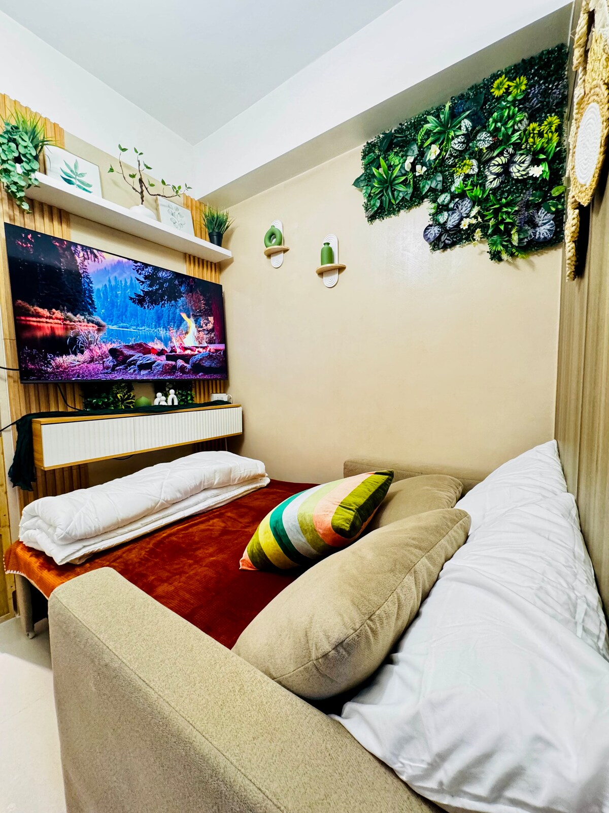 Iščete zabaven, prijeten in tehnološko napreden pobeg? To 24 kvadratnih metrov veliko stanovanje v EDSA Mandaluyong je vaše popolno bivališče! Uživajte v pametnem življenju z glasovnim upravljanjem, 75-palčnem Premium QD Mini LED-televizorju, ki zagotavlja napredno svetlost HDR in osupljivo kakovost slike in udobje, ki ga ponujajo hoteli. Popijte kavo na balkonu in opazujte čudovit sončni zahod. Ostanite povezani z internetom s hitrostjo 100 Mb/s – kot nalašč za pare, delo od doma ali hitre izlete. Elegantno, udobno in polno kul funkcij – vaš sproščujoč pobeg iz mesta se začne tukaj!
