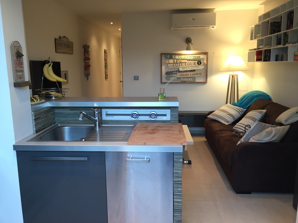 Magnifique appartement avec une belle terrasse. Il est situé dans Saint Tropez, à 5 mn à pied du Port et des ruelles. Lumineux et confortable, l'appartement est entièrement équipé avec chambre séparée. Salle d'eau avec douche et wc, cuisine et salon avec canapé convertible. Climatisation et wifi. La terrasse est équipée pour vous relaxer, prendre votre petit déjeuner au soleil... Petit garage en box fermé en sous terrain. Résidence sécurisée. Serviettes et draps compris.