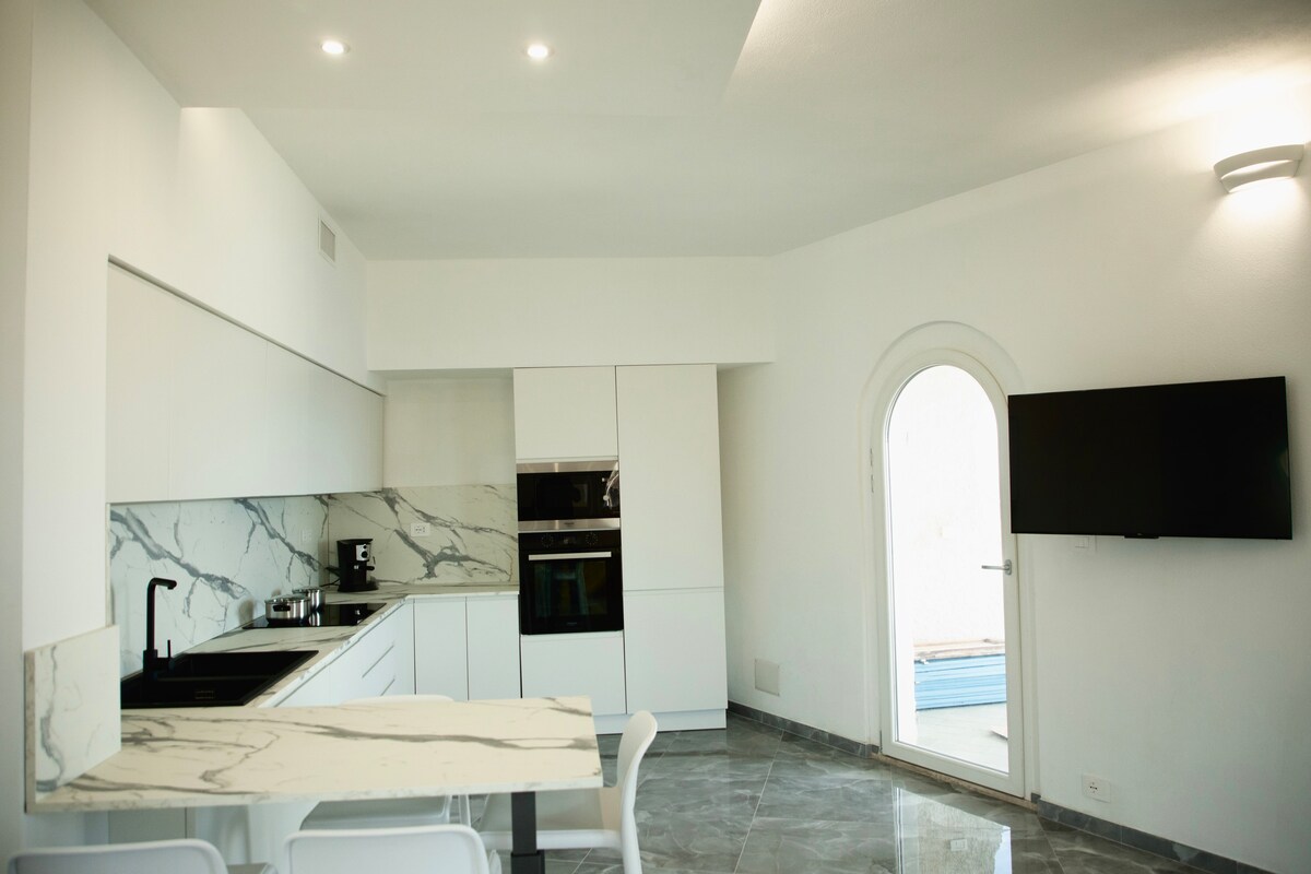 New apartment with private porch and a splendid view of the garden. A double bedroom with wardrobe, main bathroom with double shower, toilet, large living area with kitchenette. Design furnishings with a few touches of Sardinian furniture and craftsmanship. The residence is surrounded by greenery just 10 minutes from the city center, close to the main services and beaches, but at the same time away from traffic and noise.