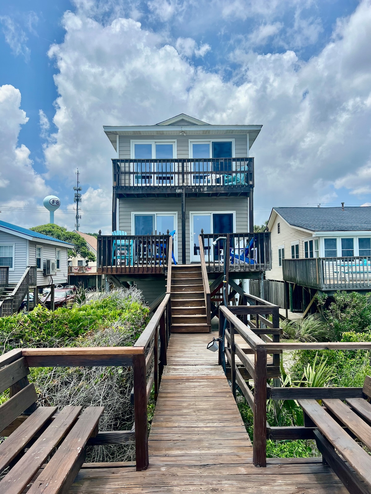 King Tide ponuja nekaj najbolj spektakularnih razgledov, ki jih ponuja plaža Folly Beach, ki se razprostira na močvirju, znameniti svetilnik Morris Island, most Ravenel in Atlantski ocean. Z dvema prostornima zadnjima terasama, veliko verando in odprtim bivalnim prostorom vam ne bo primanjkovalo prenočišč, v katerih lahko uživate. King Tide se nahaja tik nasproti plaže, le kratek sprehod do javnega dostopa do plaže in rezervata Lighthouse Inlet Heritage Preserve. Udobno spi 10–11 gostov.