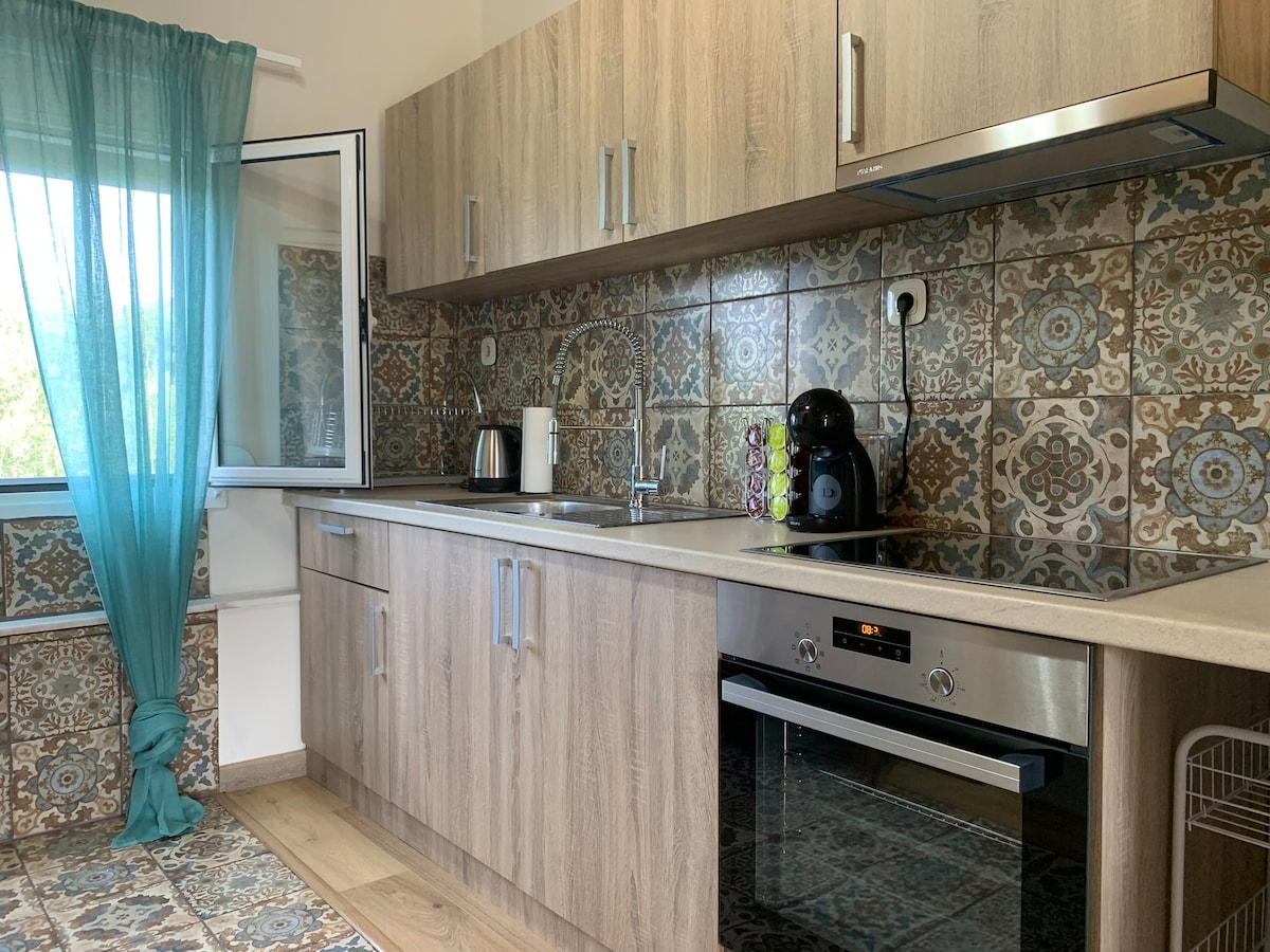 Čudovito urejeno stanovanje v prenovljeni hiši,dve minuti od središča antične Olimpije. Ima Wi-Fi,klimatsko napravo,pralni stroj, ogrevanje,TV in prvo potrebo. Zasebni vhod,kuhinja, dve spalnici,ena kopalnica. Zunanja terasa s pečico na drva in žarom. Parkiranje. Starodavna Olimpija,mesto z 1200 prebivalci,rojstni kraj olimpijskih iger, je oddaljen 2 km. Tam boste spoznali restavracije,kavarne in vse potrebne storitve.