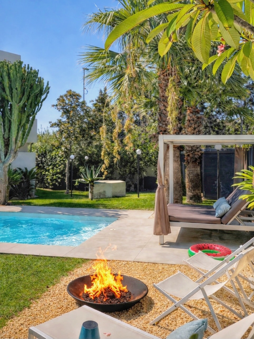 Private heated pool 30°C, sea view and total privacy. Just 3 minutes from the beach. Signature design and refined luxury. An architectural retreat immersed in tropical greenery overlooking the sea. Iconic design, comfort and top-level services. Premium sleep with toppers and a curated pillow menu. Breathtaking sea views and refined finishes. On request: private chef, daily housekeeping and experiences. Signature design by C. Calvagna.