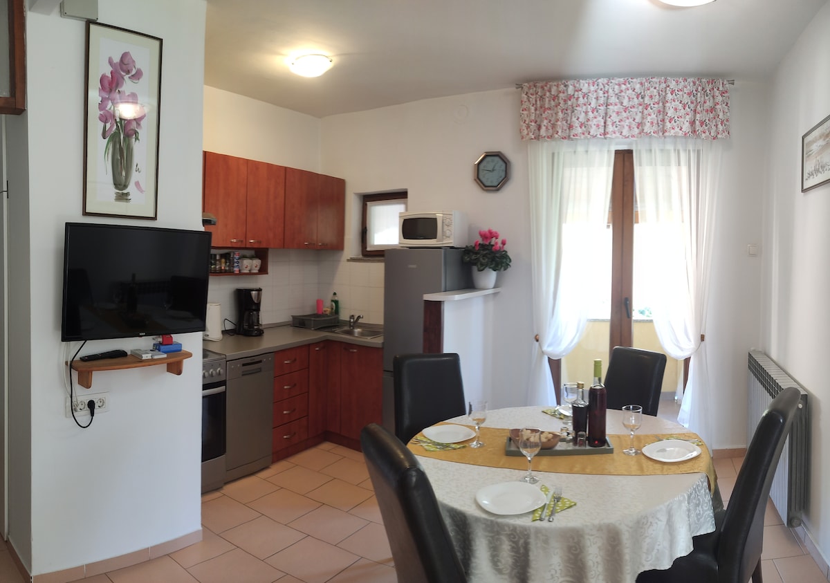 Perfect for couples, solo adventurers and small families. A very peaceful place suitable for working nomads-fast internet. You get a charming view of the valley from your window, a cozy dining and living area with the kitchenette, all the comfort to have your morning coffee or a nice meal with a glass of wine in your own privacy . Stunning views of the Slovenian coast, olive orchards and vineyards on the way home. 2km away from the ocean, nice walks and biking nearby. Tourist tax of 2E p/pax