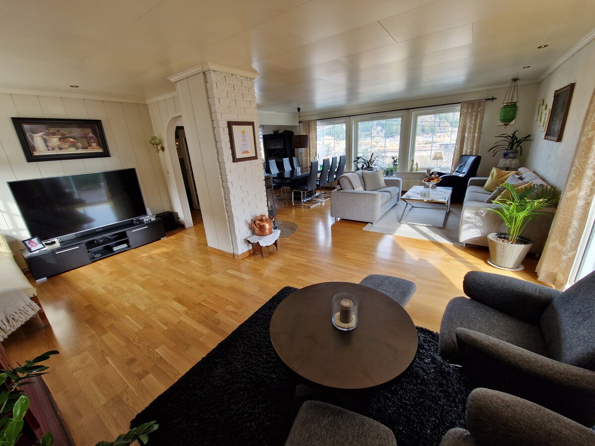Welcome to Klokkargarden - the quiet pearl in Aurland! The old part of the house was built 1947 and we are now the 4th and 5th generation living here. It has always been Marit’s favourite place and it is growing on Espen as well. The new part of the house where you find your flat was was finished 2018. The outdoor area is still "work in progress" - but lift your eyes and you can see the beauty of the Aurlandsfjord. The flat is well suited for 2-3 adults or 2 adults plus 2 young children.