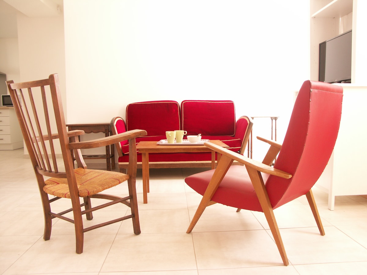 Stanovanje, 2 sobi, običajno s površino 40 m2, sestavljeno iz dnevne sobe z odprto kuhinjo, spalnice, kopalnice in ločenega stranišča. Kopalnica je pritrjena na spalnico. V osrčju zgodovinskega mesta se lahko sprehodite do plaže, tržnice, železniške postaje, trgovin in restavracij. »Vse peš« za vaše počitnice! Raztegljiv kavč v dnevni sobi je pripravljen na zahtevo.