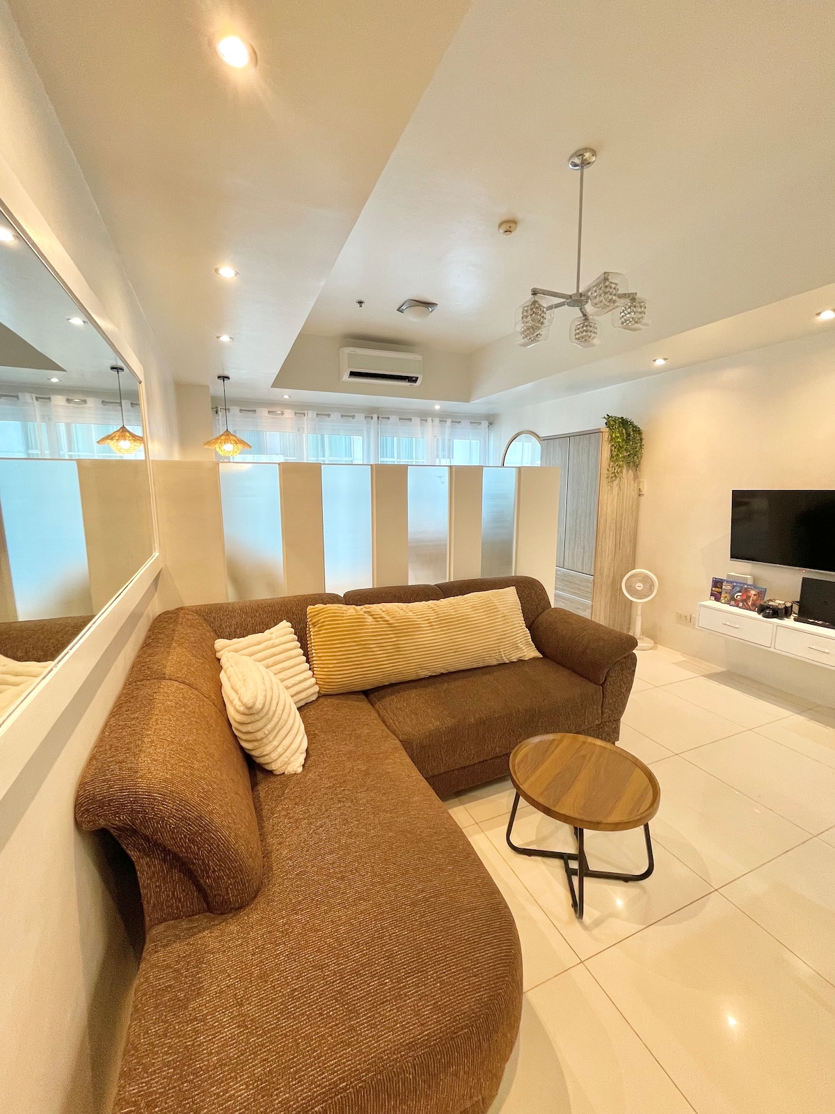 Dobrodošli v apartmaju Skyline Suite. Uživajte v elegantnem mestnem življenju v svetlem kotnem apartmaju z dvema spalnicama in steklenimi okni od tal do stropa v Bonifacio Global Cityju. Udobno sprejme do 6 gostov in ima popolnoma opremljeno kuhinjo ter sodobno osnovno opremo – kot nalašč za družine, prijatelje ali poslovna potovanja.