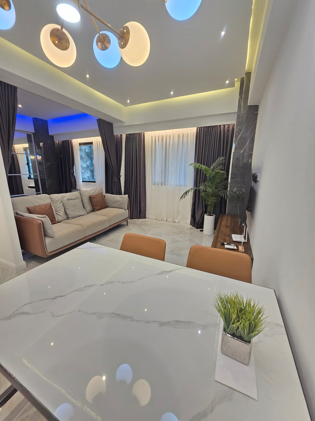 This apartment has a sleek and modern design. It offers calm and relaxation at the heart of the city. A loft-type that is spacious and very quiet. No sounds of busy streets are heard as it is located on a top floor. Rooms have pleated roller blinds that adjusts from minimal lighting to black-out if you want a well rested sleep. It is designed for travelers looking for a clean and peaceful place near the Central Square of BGC.