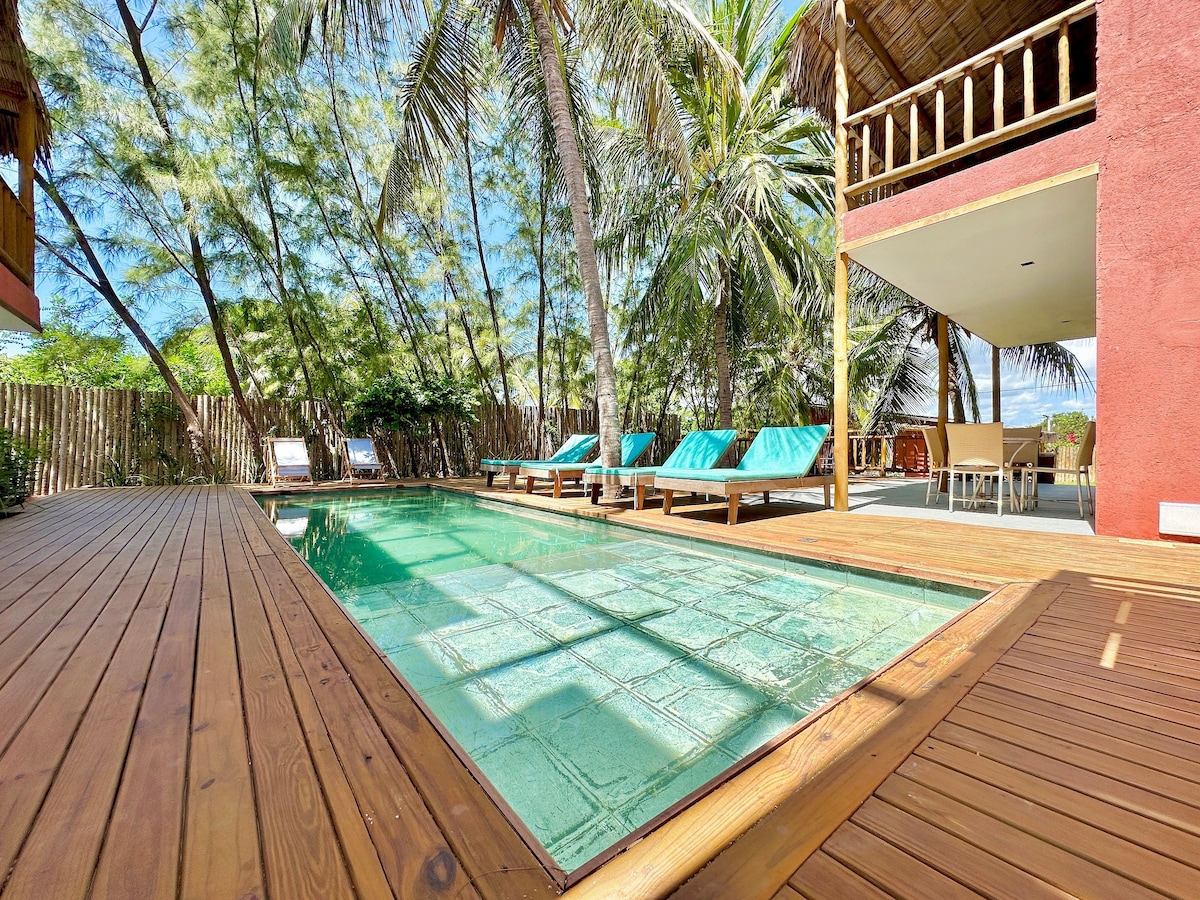 VILLA VERDE: 3 Schlafzimmer (2/2/3 Pers.), 2 Badezimmer, Küche voll ausgestattet, großer, gemütlicher Wohnraum mit TV, High Speed Glasfaser-Internet bis zum Pool, 5G (abschaltbar), hohe Sicherheit durch Alarmanlage, 400m vom Strand, Top Kite-Spot, deutsches Kitecenter KBC! Großer uneinsehbarer Garten, Nacktbadepool :-) (80cm-1,60cm verlaufend, Treppe hinein), Grillstation, Kokospalmen, Mangos, Zitronen, Papayas, Bananen, viele Früchte. Tägl. Reinigung. Restaurant 100m entfernt. Preis: ab €600/Wo