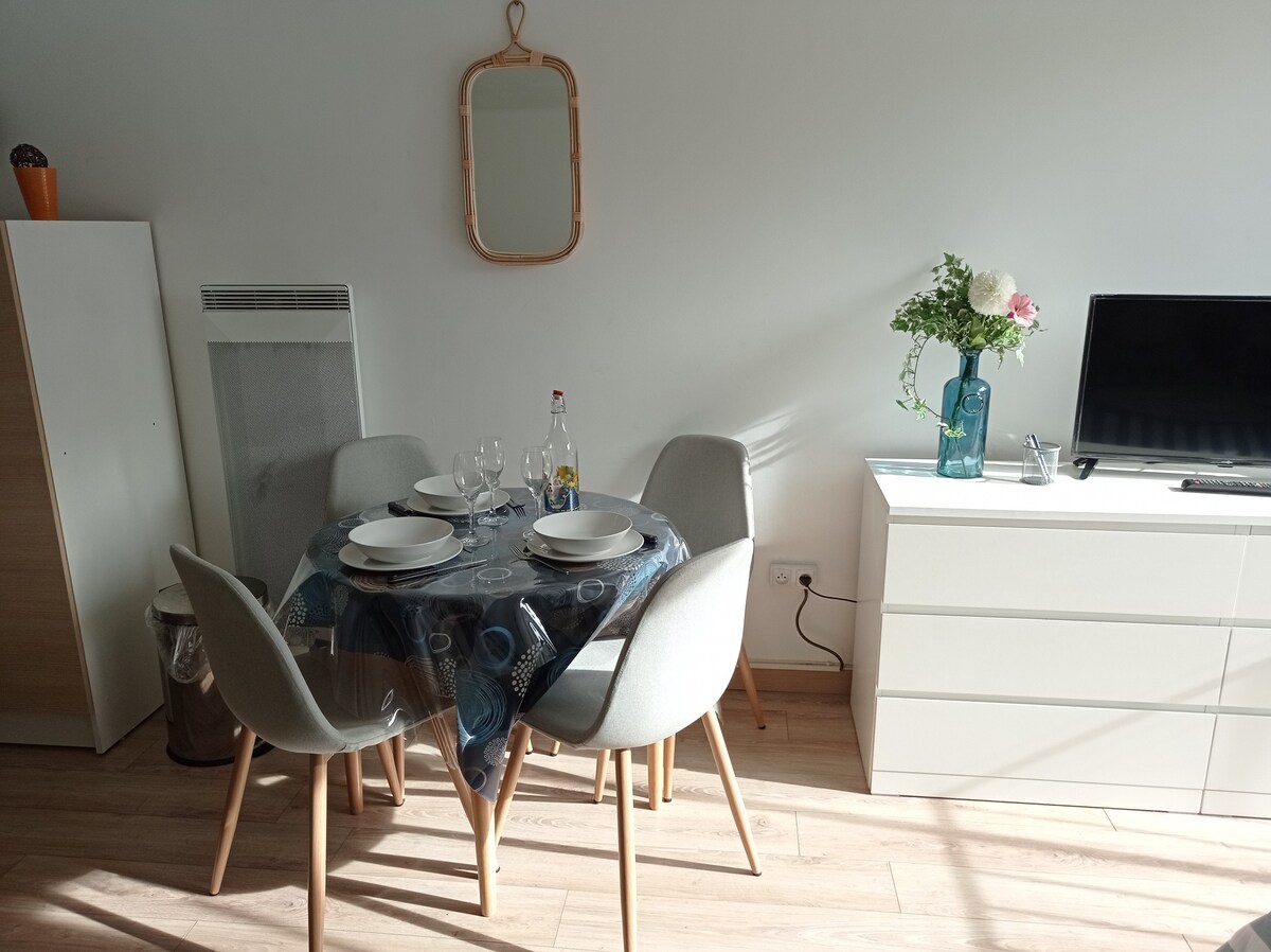 Majhen studio brez stopnic, opremljen, se nahaja v zasebnem stanovanjskem območju na marini 50 m od plaž in 10 minut od centrov za dejavnosti. Z brezplačnim parkiranjem v bližini. Dnevni prostor z raztegljivim kavčem in ravnim zaslonom Opremljena kuhinja Kuhinjska plošča Plin + mikrovalovna pečica + električna pečica + aparat za kavo Tassimo + pralni stroj + kombinirani hladilnik-zamrzovalnik. Kopalnica in umivalnik Spalnica z zakonsko posteljo -