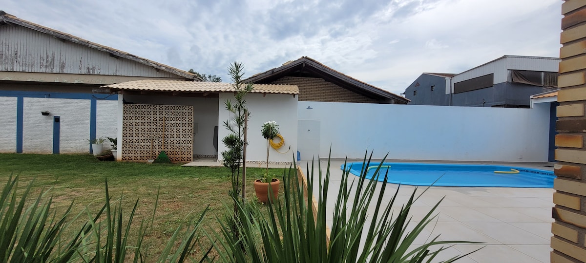 Leve toda a família a este ótimo lugar com muito espaço para seu momento de descanso e laser. Ambiente com 4 suítes e 1 banheiro externo, 4 suítes com ar- condicionado , sala de estar, sala de jantar, edícula com churrasqueira, pia, piscina, cozinha completa incluindo geladeira, micro-ondas, forno elétrico, liquidificador, sanduicheira e utensílios necessário. Garagem coberta para 1 carros e espaço aberto para mais 3. OBS: piscina não possui aquecedor e nossos valores são por pessoa.