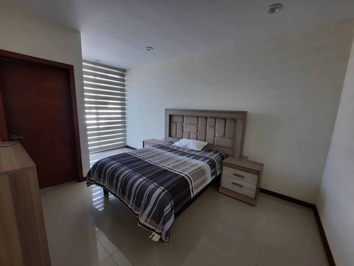 Comfortable and stylish apartment with a cheerful style. It has all the amenities of a luxury apartment such as a pool, roof garden, childrens playroom, business center, private parking, 24/7 vigilance and a gym. Enjoy the new chic area of Querétaro, with the best view of the natural reserve "El Tángano" and of the city. Very close to the bus terminal, the highway to Mexico City and the exit to the International airport. Important to confirm the number of guests.