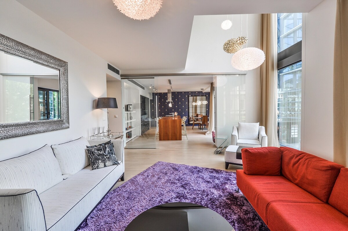 180 sq/m apartment in Vladislavova Residence with panoramic windows onto the park and a moving sculpture of Kafka by David Černý. The apartment is 7 minutes away from Staroměstské náměstí. Apartment building has a direct access to the adjacent Quadrio shopping center (07:00-22:00), Národní třída metro station accessed directly from shopping center, 1 private parking space in the guarded parking garage, sound-proof windows, climate control system and security surveilled entrance hall.