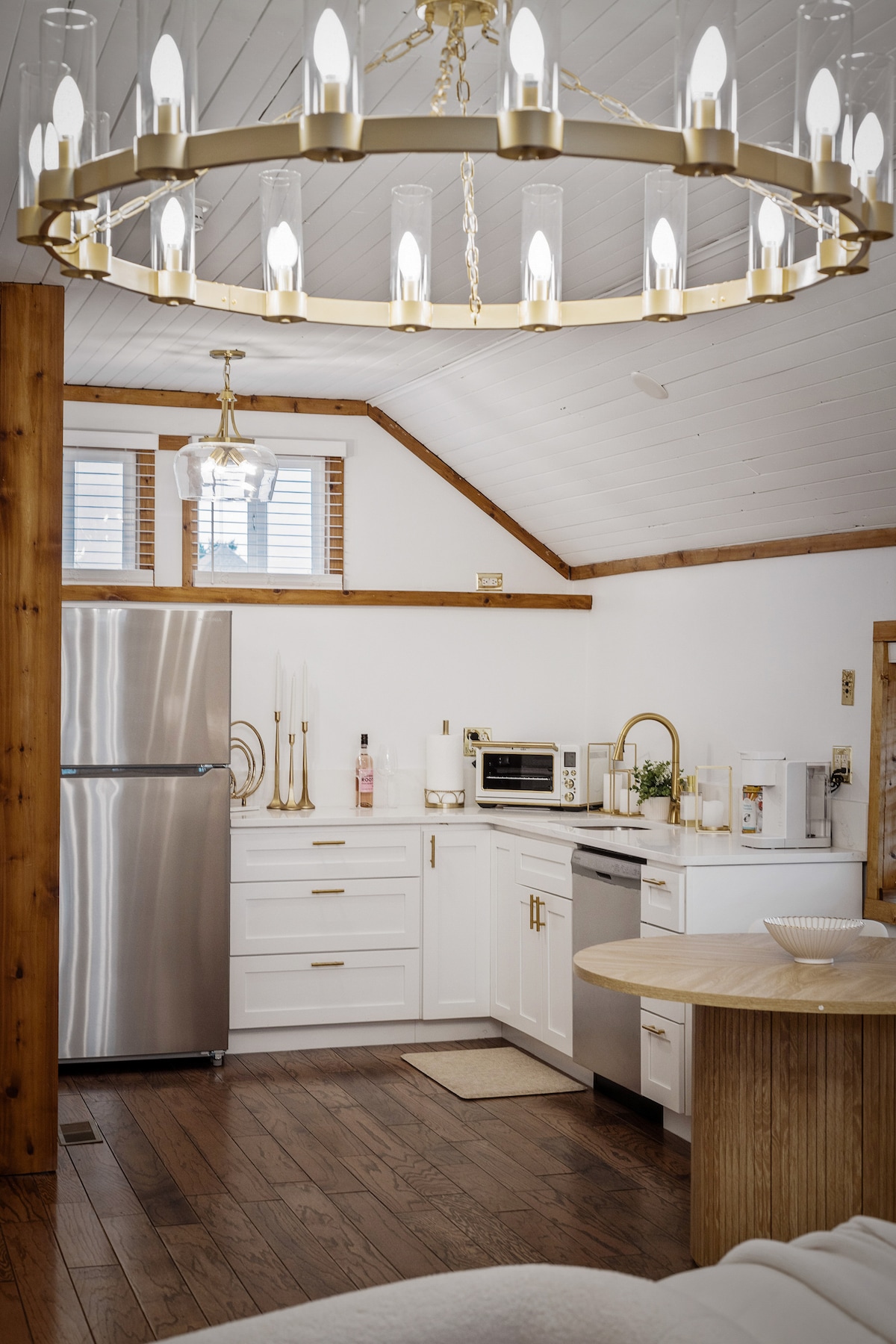 To osupljivo prenočišče za goste v središču mesta združuje razkošje in udobje za miren oddih v mestu. Ko se vzpenjate po stopnicah, osupljiv lestenec ustvarja vzdušje za toplino in eleganco. Stopite v prostor, ki se počuti kot topel objem s plišasto zakonsko posteljo, 65-palčnim pametnim televizorjem in popolnoma opremljeno kuhinjo. Elegantna kopalnica ima stoječo prho, pralnico in omaro za posteljnino. Vsaka podrobnost je izbrana za elegantno, intimno in nepozabno bivanje.