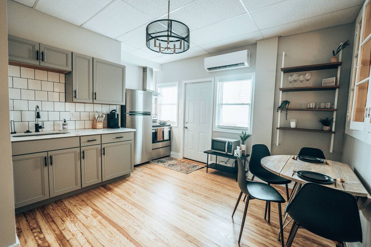 Uživajte v središču Chambersburga v tem biophijskem, trajnostnem predelanem stanovanju, ki je v središču lokalnih trgovin, restavracij, pivovarn in kavarn. Stavba, v kateri je bilo podstrešje, je bila postavljena leta 1890, kar je omogočilo, da je prostor edinstven za to obdobje. Sprehodite se po glavni ulici in vzemite občutek za naše nenavadno središče mesta. V eni ulici od prostora je železniška proga za vadbo in kolesarjenje. Chambersburg je trideset minut vožnje do Gettysburga, od Baltimorja in Washingtona pa manj kot dve uri.