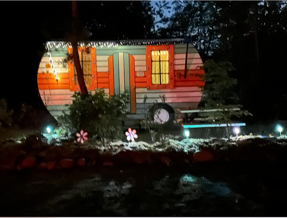 To je popoln oddih za tiste, ki želijo spektakularen pogled na gozd in popolno zasebnost. Ta čudovita prikolica RedWood, dolga 41 čevljev kuhinja v polni velikosti s pomivalnim strojem, pralnim strojem, sušilnim strojem; prho in straniščem. Vključuje udobno zakonsko posteljo in raztegljiv kavč s kaminom. Nahaja se na 2,5 hektarja zemlje z neverjetnim naravnim pogledom na gozd. Je zasebna in ločena od glavne kmečke hiše z lastnim zasebnim prostorom za sedenje za vaš užitek ob ogledu. https://youtu.be/IUMTX5poa0U