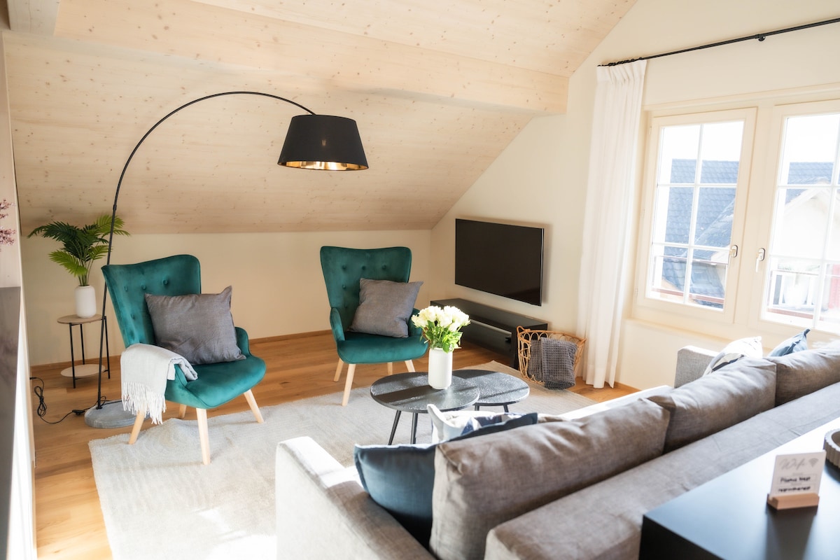 Sodobna nastanitev s panoramskim razgledom na jezero Thun