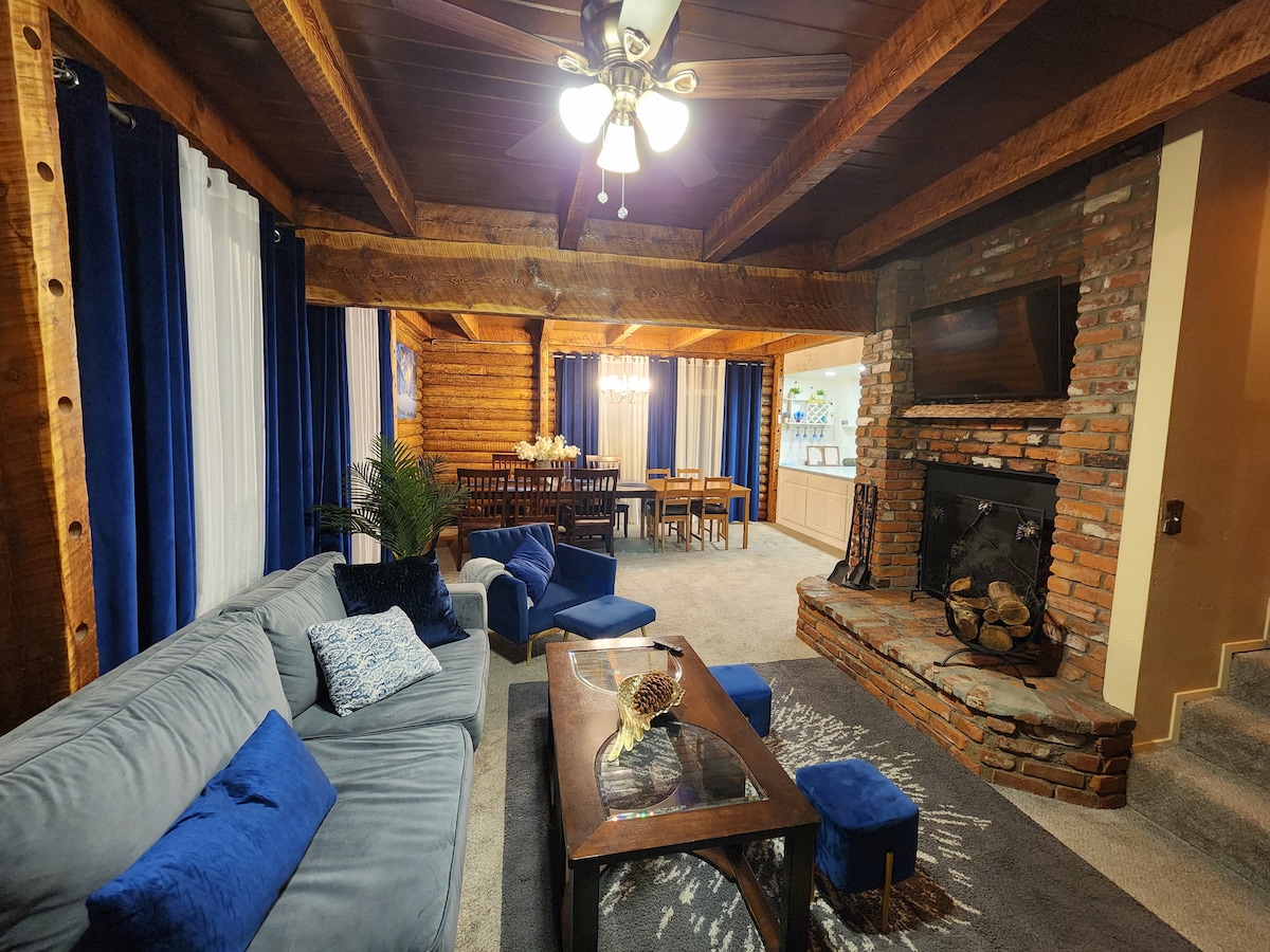 This rustic cabin in the woods is the perfect getaway for nature lovers. With beautiful views of the Pine Mountain Club's landscape, this cabin is great for a relaxing weekend alone or with family and friends. Plus, it's only 67 miles away from bustling Los Angeles! Floor to ceiling windows let you take in all the natural beauty around you, and there's plenty of space for everyone to relax. Whether you're looking for a serene escape or a fun-filled adventure. Book now and enjoy your stay!