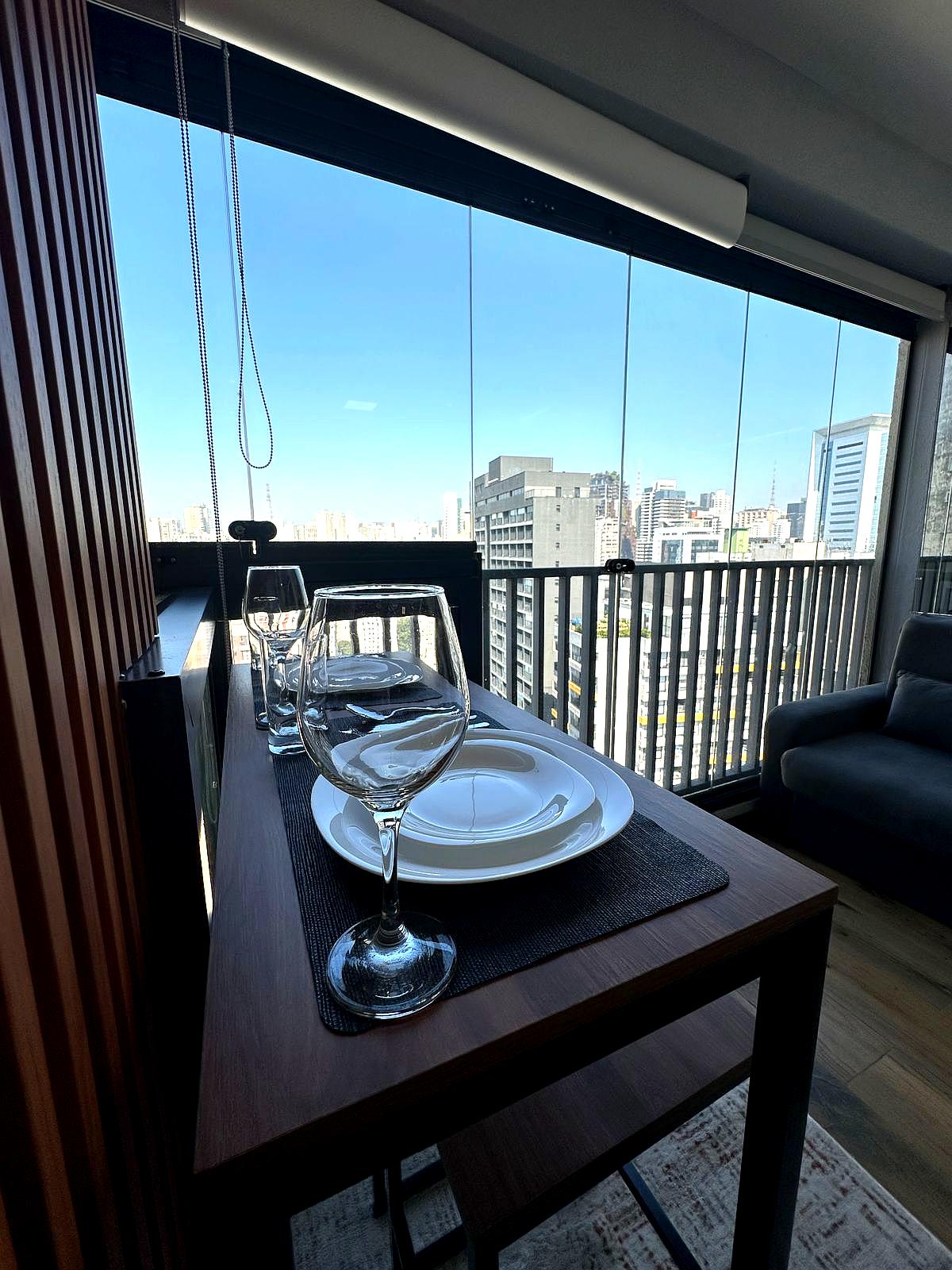 41 m² veliko stanovanje, dobro opremljeno za bivanje do 4 oseb. Prepovedano je KAJENJE ali SPREJEM OBISKOVALCEV. Ne naredimo nobene izjeme. Nahaja se v soseski Bela Vista v São Paulu, le nekaj ulic stran od kraja Av. Paulista. Apto se nahaja v 25. nadstropju in ima značilen razgled na mesto.