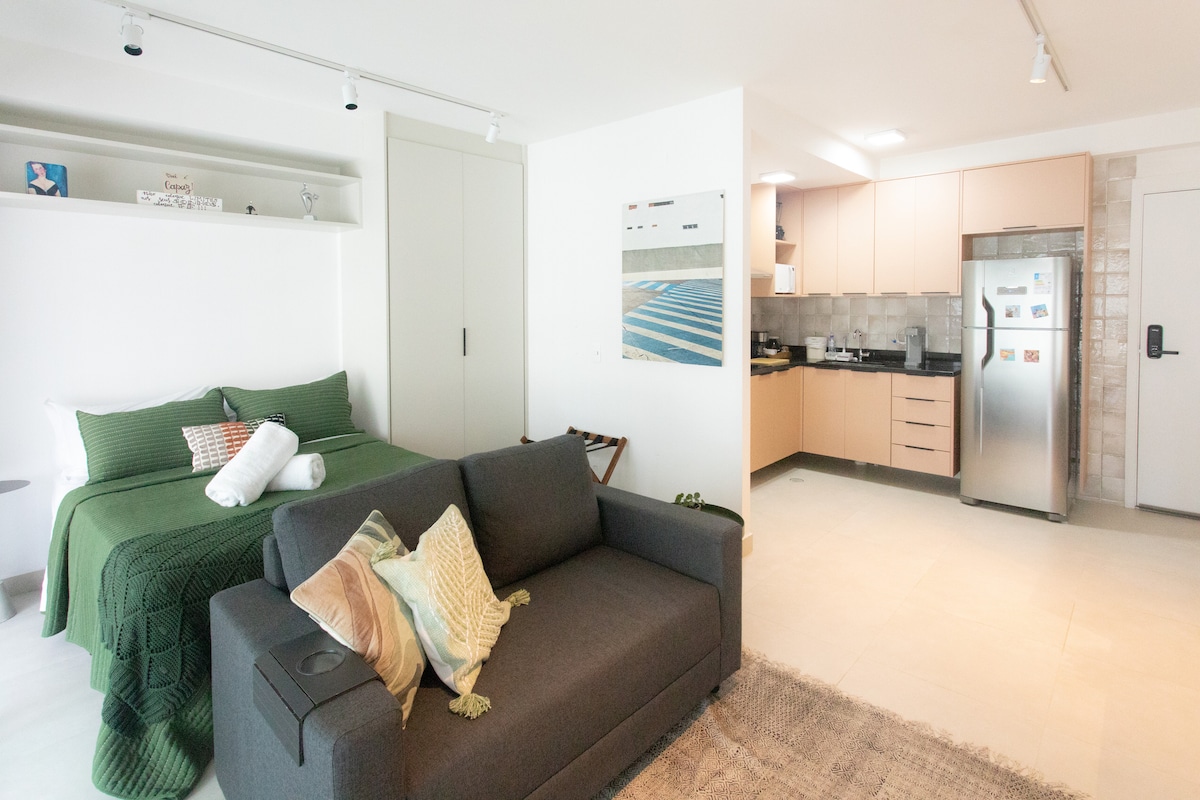 Očarljiv studio s popolno infrastrukturo za počitek, prosti čas in delo. Zasnovan je bil tako, da nudi veliko udobja, pripravljen, da zadovolji vse potrebe gostov za krajša ali daljša bivanja. Odlična lokacija, idealna za spoznavanje mesta med delom ali na počitnicah. 1 min hoje od nakupovalnega središča Frei Caneca, 5 min hoje od podzemne železnice Higienópolis-Mackenzie, 10 min hoje od avenije Paulista, bližnjih barov, restavracij, barov s prigrizki in 24-urnih trgov.
