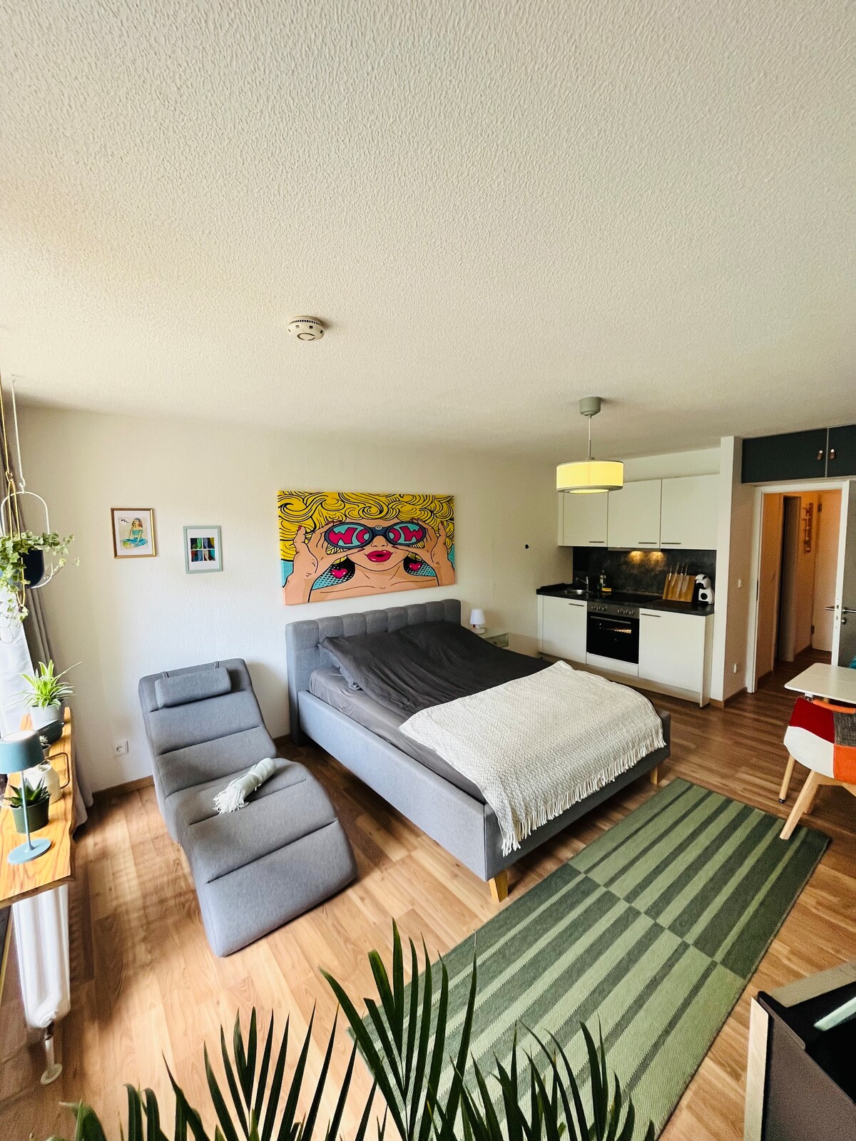 Od GLAVNE ŽELEZNIŠKE POSTAJE neposredno v stanovanje, ni problema. V Freiburgu ne morete živeti bolj centralno. Veseli nas, da vas zanima naše na novo prenovljeno stanovanje s površino 40 m2. Posebnost je v resnici lokacija v drugi vrsti do GLAVNE ŽELEZNIŠKE POSTAJE, prijetnega balkona in visokokakovostnega novega pohištva. Tukaj vam ne manjka nič. Popolnoma opremljena kuhinja (aparat za kavo od Dolce Gusto) do vinskega hladilnika.