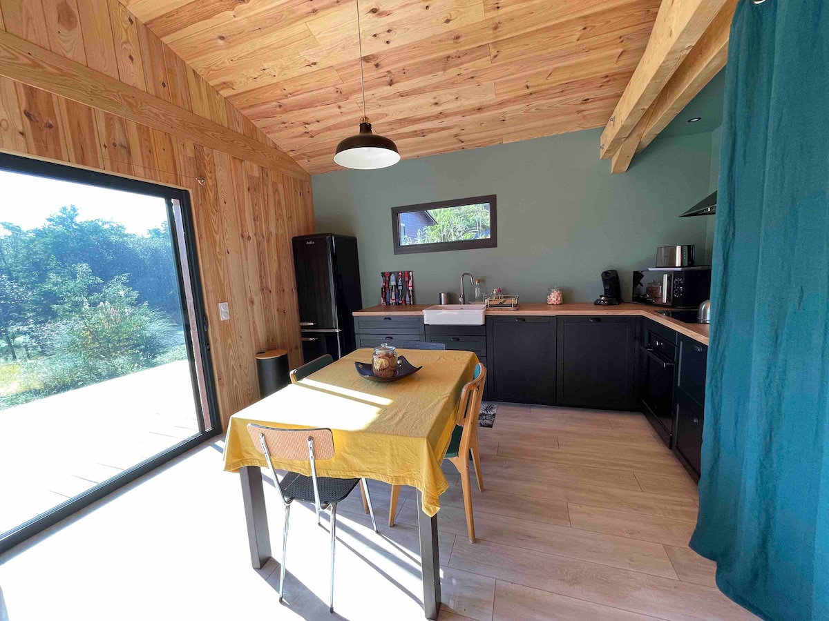 Ce logement unique est proche de tous les sites et commodités, situé entre Biarritz et Hossegor il se trouve à 2 pas du terminus tram bus et à 5 min des plages sur la côte landaise . Il vous offre un beau panorama sur la forêt dans un quartier calme . Il comprend 2 chambres un salon une cuisine équipée une belle petite salle d’eau et une grande terrasse . Il est tout en bois comme les cabanes traditionnelles du cap ferret confortable élégant tres facile d’accès et très bien isolé .