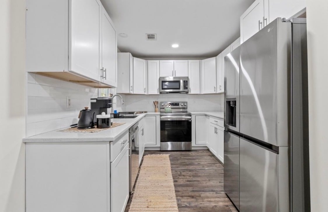 Odprt koncept, dnevna soba, jedilnica, popolnoma opremljena kuhinja 3 spalnice 2 kopalnici, zaščitena zadnja veranda, pralni/sušilni stroj, samostojni vstop. Zunanje varnostne kamere. Centralno ogrevanje/zrak. Hiter Wi-Fi. Hiša je pametni dom s pametnimi televizorji, radijskim/CD predvajalnikom. CVS v bližini, pasji park za CVS. Letališče 12 min, Amtrak 3 min Tanger outlet/Walmart/Sam 's Club 8 min, središče Charlestona 17 min Plaže 20-30 min. Restavracije, Old North Charleston 3 min. Dovoljenje za kratkotrajni zakup v North Charlestonu 2026-0074