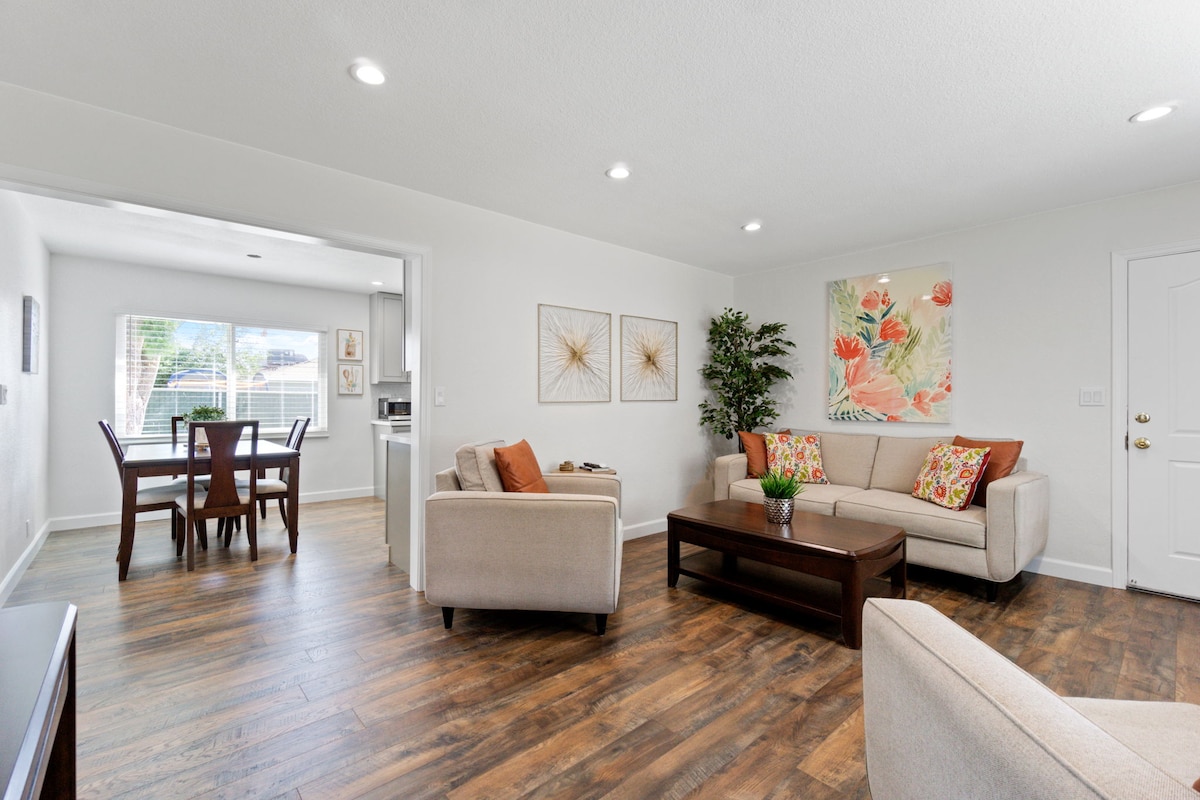Clean and cozy 3 bedroom 2 bath home very spacious enough room for the entire family. Each bedroom contains a 43 inch smart TV with a 65 inch smart TV located in the living room. The kitchen consist of upgraded stainless steel appliances. This home is located next to Highway 41 and 7 minutes away from Tower District where you’ll find plenty of entertainment and restaurants to enjoy with family and friends. Early check ins/Late checkouts may be available if guest request it.